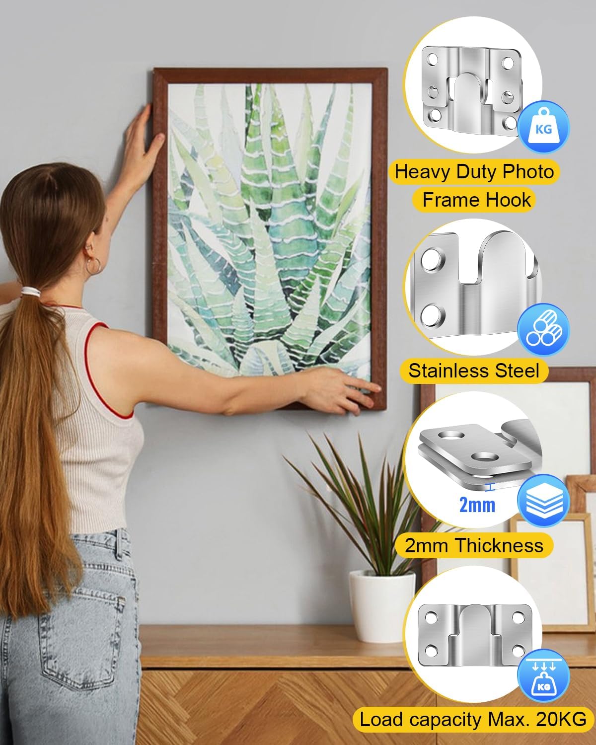 Achetez Caianwin Lot de 8 crochets de suspension en acier inoxydable pour cadre photo, miroir, support mural et connecteur de meubles (54 mm x 30 mm La surface brossée peut conserver la beauté et la couleur pendant une longue période. Accroche Meuble Lourd Crochet De Fixation En Z Pour Rail De Miroir Robuste, Support De Fixation De Cadre Robuste Pour Connecteur De Meuble De Miroir Photo | Leroy Merlin Support Mural Lourd Facile à utiliser, les cadres photo emboîtables peuvent être retirés du mur ou suspendus à tout moment. Largement utilisé : accrocher des tableaux lourds, peut être utilisé pour accrocher des cadres photo, des cadres photo, des miroirs, des œuvres d'art et pour connecter des têtes de lit et des meubles lourds, etc. C'est un accessoire polyvalent pour la maison ou le bureau Kit de crochets pour cadres : 12 pièces de 44×19 mm et 24 vis de fixation, capacité de charge maximale de 10 kg, quantité suffisante pour un usage quotidien... Lot de 8 crochets pour cerfs, support européen en acier, suspension Le support mural est fabriqué en métal avec des bords arrondis, ce qui est sûr et ne blesse pas facilement vos mains. Contenu de l'emballage : Lot de 8 connecteurs de meubles verrouillables., 32 vis. Le crochet de miroir est doté d'un trou encastré, de vis intégrées qui ne se propagent pas facilement, de sorte que les clips sont solides et bien verrouillés.