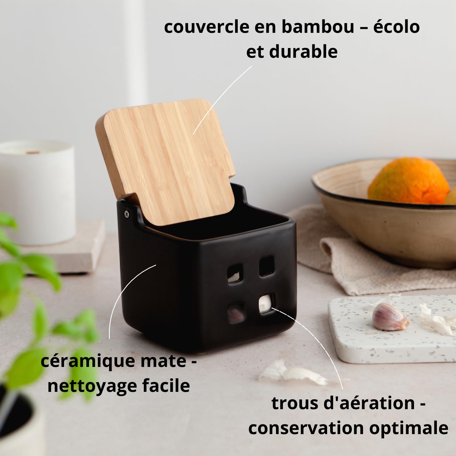 Bocal Aération Naturelle Pyramide Ail Oignon échalotes KOOK TIME Pot De Conservation D'Ail En Cu00e9ramique Avec Couvercle En Bois De Bambou - Idu00e9al Pour Le Rangement Et La Conservation De L'Ail, Oignon Et U00c9chalote Déco Cuisine Pot Ail Il suffit de l'essuyer doucement avec de l'eau chaude et un détergent neutre. Pot à ail : le top 10 des eilleurs de juillet 2025 - Besteo Parcourez notre sélection de pot de conservation à l'ail : vous y trouverez les meilleures pièces uniques ou personnalisées de nos boutiques Le couvercle de la boîte à ail en céramique peut empêcher efficacement la lumière et l'humidité, garder les aliments frais et empêcher la germination. Les bocaux de conservation à l'ail peuvent améliorer la beauté globale de votre cuisine et de votre cuisinière. Guide Pratique : Conserver l'Ail en Bocal à la Façon Espagnole 【Facile à nettoyer】: Le pot à ail en céramique a une surface lisse et ne laisse pas de taches ou de graisse. Bocaux de conservation pour ail : pot à ail en céramique avec couvercle en bambou et trous d'aération, récipient respirant pour stocker l'oignon, l'ail, le gingembre Le pot à ail en céramique est la solution de rangement idéale dans votre cuisine, spécialement conçu pour l'ail, le gingembre, les oignons et d'autres ingrédients qui nécessitent un stockage ventilé. La conception de ventilation est la clé pour garder l'ail et d'autres ingrédients au sec et prolonger efficacement leur durée de stockage. Le design blanc classique des bocaux de conservation à l'ail s'adapte parfaitement à toutes les cuisines. 【Matériau de haute qualité】: Le pot à ail en céramique est fabriqué en matériau céramique de haute qualité, le glaçage est lisse et brillant et facile à nettoyer. Pot à oignons en céramique de grand diamètre, vous pouvez facilement l'ouvrir et retirer l'ail. Grande capacité : la taille du rangement de l'ail offre 11,4 cm de hauteur et 9,5 cm de largeur. Il offre non seulement une grande capacité, mais peut également contenir 5 à 7 gousses d'ail.