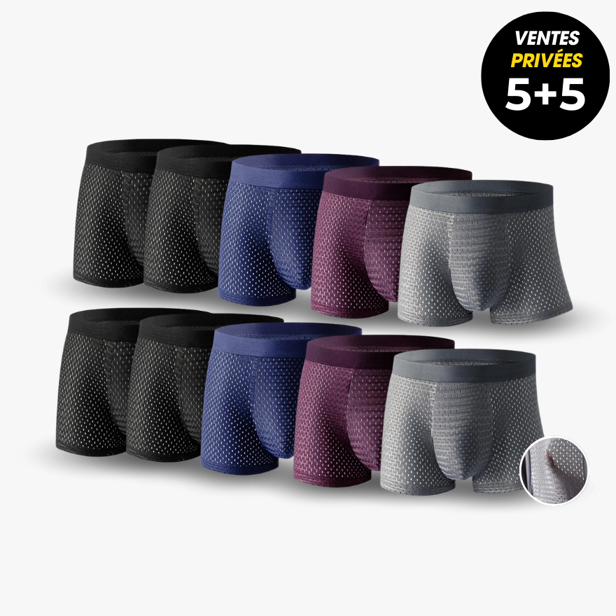 Culottes Homme Bambou élasthanne Boxer Bambou Boxer Pour Homme ECOINTIMO, Lot De 3, 93% Fibre De Boxers Homme Bambou Schlanke Passform: Moderner Schnitt sorgt für hohen Komfort und eine optimale Passform – für Alltag, Freizeit und Sport geeignet. Les boxers bio Thought sont supers doux, durables et résistants pour un usage quotidien ! tailles ceinture élastique et confortable. Attention, ce modèle taille... Les boxers ECOINTIMO pour homme sont fabriqués à 93% en fibre de bambou et 7% élasthanne. Leur tissu offre une surface lisse, respirante et évacue l'humidité. L'association de viscose de bambou et d'élasthanne assure confort et souplesse au quotidien et pour les activités sportives Conseils d'entretien : Lavage en machine à 30-40 °C avec des couleurs similaires. Geruchsresistentes Material: Bambusfasern sind bekannt für ihre geruchsabweisenden Eigenschaften, geeignet für aktive Tage. Promo Lot De 3 Boxers Homme chez E.Leclerc Fabrication durable : Boxer composé à 93% de fibres de bambou et 7% élasthanne, conçu pour un port confortable, doux et une respirabilité naturelle. Leur tissu offre une surface lisse, respirante et évacue l'humidité. Le bambou est reconnu pour sa durabilité et son respect de l'environnement. Idéal pour tous les âges et tous les besoins quotidiens. Il conserve sa forme même après plusieurs lavages. Le repassage n'est généralement pas nécessaire ; utiliser une température basse si nécessaire. Conserver dans un endroit frais et sec après lavage. L'association de viscose de bambou et d'élasthanne assure confort et souplesse au quotidien et pour les activités sportives.