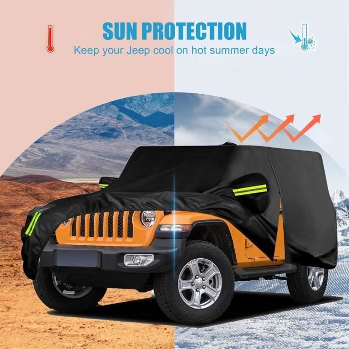 Sangles coupe-vent et ourlet élastique : design coupe-vent pour fixer sur la voiture contre les vents forts. La bâche voiture housse pleine externe est spécialement conçue pour les Jeep Wrangler JK et JL à 2 portes, offrant une protection complète contre les intempéries et la poussière Compatibilité : Pour Jeep Wrangler JK 2 portes 2007 2008 2009 2010 2011 2012 2013 2014 2015 2016 2017., Pour Jeep Wrangler JL 2 portes 2018 2019 2020 2021 Caractéristiques : Nous nous concentrons sur le développement de modèles spécifiques pour les rendre plus adaptés et plus professionnels au lieu de housses de voiture universelles. Protection contre les intempéries : la housse de voiture épaisse et résistante aux intempéries offre une protection générale du véhicule contre tous les éléments météorologiques : poussière, neige, feuilles, pluie et autres matériaux nocifs. Ne prend pas de place supplémentaire. Bonne résistance à la neige en hiver et garde au frais en été. Design : 4 barres d'avertissement réfléchissantes, fermeture éclair pour porte conducteur, 2 sangles coupe-vent et élastiques, 1 sac étanche. LXQHWJ Housse de Siege Voiture Universelle pour Jeep Compatibilité : dimensions de la housse : 440 x 190 x 150 cm (L x l x H). Dimensions : 440 x 190 x 150 cm (L x l x H). Contenu de l'emballage : 1 housse de voiture. Elle protège intégralement la carrosserie contre les intempéries : pluie, neige, grêle, mais aussi contre la poussière, le pollen, les fientes d'oiseaux et les... Accessoire Jeep Jk Jl Housse étanche Protection Anti-uv Poussière Housse Voiture Jeep Wrangler 2 Portes - Imperméable 6 Couches - 430x165x165 Cm - Gris Bâche Wrangler 2 Portes Imperméable Bache Voiture Exterieur Installation : installation facile Il s'agit d'un produit non OEM, accessoire uniquement.