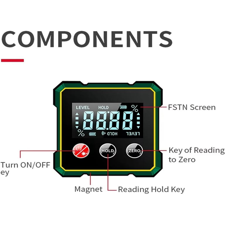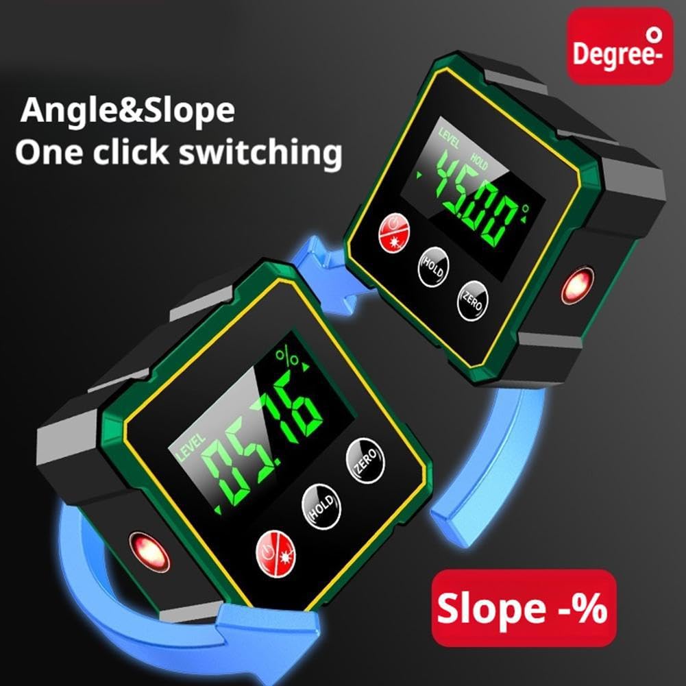 The 4-Side Magnetic Digital Angle Gauge with Laser ensures long-lasting performance as a practical Magnetic Angle Gauge , 5., Robust and User-Friendly Design: With a rugged, impact-resistant outer shell that withstands daily wear, this Mini Nivel Digital offers intuitive button controls: short press to power on, long press to turn off, and a ZERO button for instant angle reset. As a Digital Angle Finder Magnetic, it ensures reliable accuracy for all your alignment tasks, ideal for use as a Mini Nivel Digital tool in diverse environments , 2., Large Clear LED Display: Equipped with a bright, easy-to-read LED screen, this Magnetic Digital Angle Gauge with Laser provides real-time data visibility even in daylight, boosting efficiency for indoor and outdoor work regardless of light conditions. This design makes the Side Magnetic Digital Angle Gauge with Laser perfect for precise setups as a Digital Angle Gauge Magnetic , 4., USB Rechargeable with Auto Shut-Off: Incorporating a built-in rechargeable battery and USB charging, this Digital Inclinometer Magnetic with Laser includes a data hold function and auto shut-off after three minutes to extend battery life and simplify on-site use. Digital Angle Finder With Laser Digital Angle Finder Magnetic Electronic Angle Cube Dual Laser Gauge Digital Level With Slope Percentage Table Saw Miter Protractor Woodworking Measuring Tool Level Box For Hanging Angle High Precision Measurement: This Repertoireof 4-Side Magnetic Digital Angle Gauge delivers ultra-accurate readings with full 4×90° coverage, making it effortless to measure absolute or relative angles and inclinations in any scenario QUAD-MAGNETIC BASE - Equipped with powerful magnets on all four sides for secure, hands-free attachment to any ferrous metal surface. This design ensures stability and consistent readings when working on pipes, conduits, or steel frames Digital Laser Angle Gauge With 4-Sided Magnetic Base