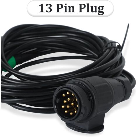 STABILITÉ DE CONNEXION: Des broches à âme en cuivre de haute qualité en cuivre sans oxygène assurent une connexion électrique solide entre le véhicule et la remorque. Pin 1: Left Turn Signal Pin 2: Rear Fog Light Pin 3: GND Pin 4: Right Turn Signal Pin 5: Right Position Light & Number Plate Light Pin 6: Stop Light/Brake Light Pin 7: Left Position Light & Number Plate Light Pin 8: Reversing Light Pin 9: Reserved terminals Pin 10: Reserved terminals Pin 11: Reserved terminals Pin 12: Reserved terminals Pin 13: Reserved terminals Fonction principale : Fournir une transmission électronique du signal pour les feux de freinage du système d'éclairage de remorque, les clignotants, les feux de position, les antibrouillards, les feux de plaque d'immatriculation et feu de recul. Connecteur Feux Remorque 12V ETUKER Prise De Remorque 13 Broches Avec Couvercle De Branchement Prise Remorque Diagrammes Comment brancher une prise remorque 13 broches ? Solution Facile à installer]: Grâce au câble 13 conducteurs pré-câblé de 2 mètres et équipé d'un gabarit de câblage, votre efficacité sera grandement améliorée. [Liste de colis]: 1 x prise de remorque en métal 13 broches, 3 x serre-câbles, 3 x vis/écrous, 7 x languettes de connexion rapide 13-polig, Stecker & Steckdosen, 12 Volt, 13 poliger anhängersteckdose
