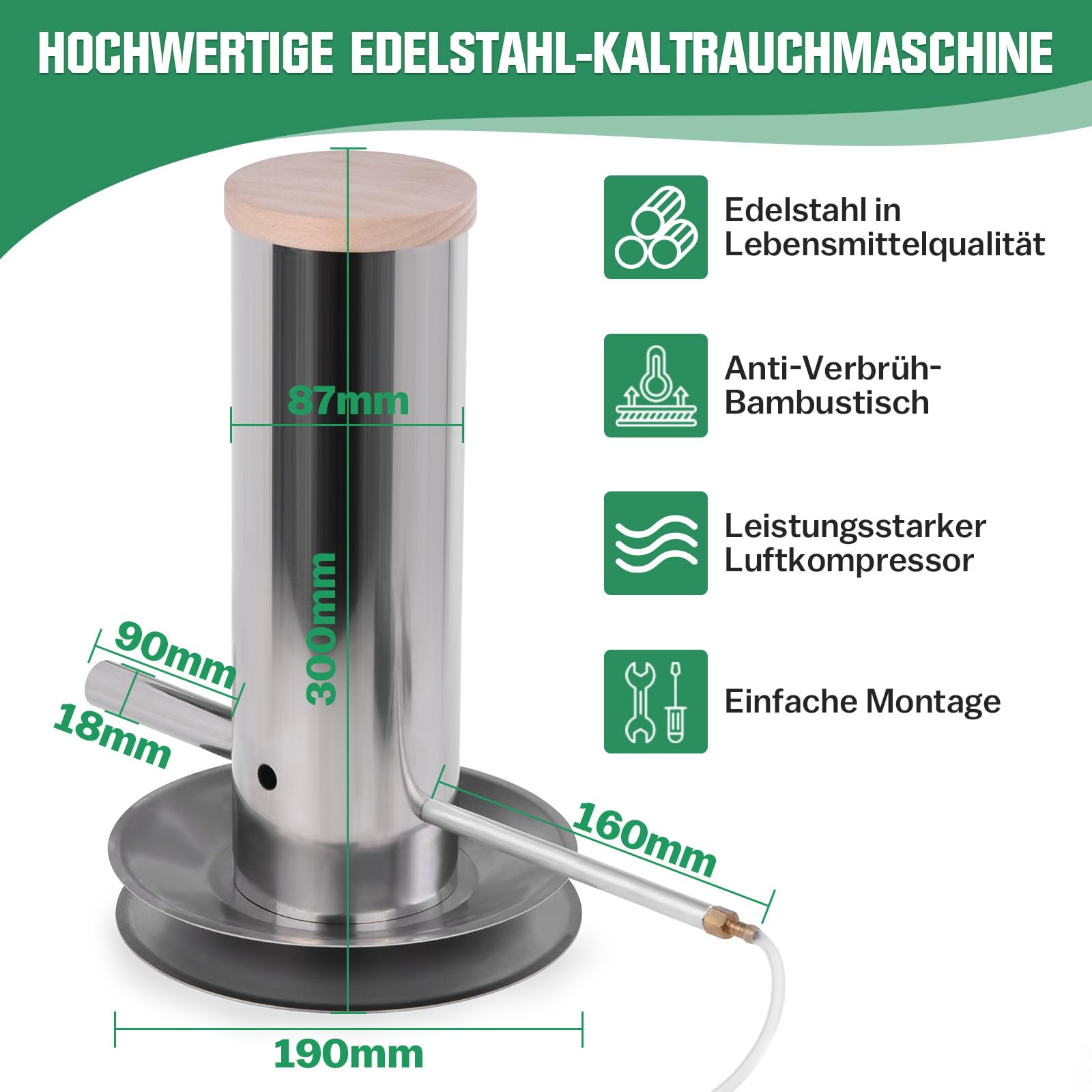 Caractéristiques : - Conçu pour le fumage à froid professionnel, ce générateur de fumée froide électrique est doux pour le poisson, la viande et le fromage. Le choix du générateur de fumée froide accompagne la réussite de vos fumages à froid. En optant pour une coupelle en serpentin ou en U, vous contrôlez la température et obtenez des résultats savoureux - Fabriqué en acier inoxydable de haute qualité, il est durable, facile à nettoyer et nécessite peu d'entretien. 【Fumage à Froid Efficace】Ce générateur de fumée froide électrique est idéal pour fumer délicatement le poisson, la viande et le fromage. Fumage a froid barbecue peut également être utilisé avec divers équipements, notamment les grils, les fumoirs et les fumoirs Fumage Viande Poisson Fromage Générateur De Fumée Froide Avec Couvercle Et Pompe à Air, Fumoir électrique Portable, Granulés De Bois, Accessoire De Barbecue Pour Viande, Légumes Fumeur électrique Barbecue Une pompe électrique intégrée assure une production de fumée continue, ce qui le rend adapté aux fumeurs débutants comme expérimentés. 【Format Compact】Ce fumoir a froid inox mesure 27 cm de long, 9 cm de diamètre et contient environ 1,7 litre, ce qui le rend peu encombrant. 【Polyvalent】Notre fumage a froid barbecue est idéal pour fumer une variété d'aliments, y compris des spécialités comme la viande, le fromage ou le poisson. - Polyvalent pour fumer une variété de plats, il est compatible avec les grils, les fumoirs et autres appareils, ce qui en fait un outil puissant pour un fumage efficace. Fumoir à froid en inox, électrique pour professionnel : Fumoir FM 2 Spécifications : Nom du produit : Générateur de fumée froide électrique Matériau : Acier inoxydable Dimensions : 28 x 20,5 x 11,5 cm Poids : 1500 g Contenu : 1 x Générateur de fumée froide électrique Faire un fumoir à froid et conseils d'utilisation - You Barbecue