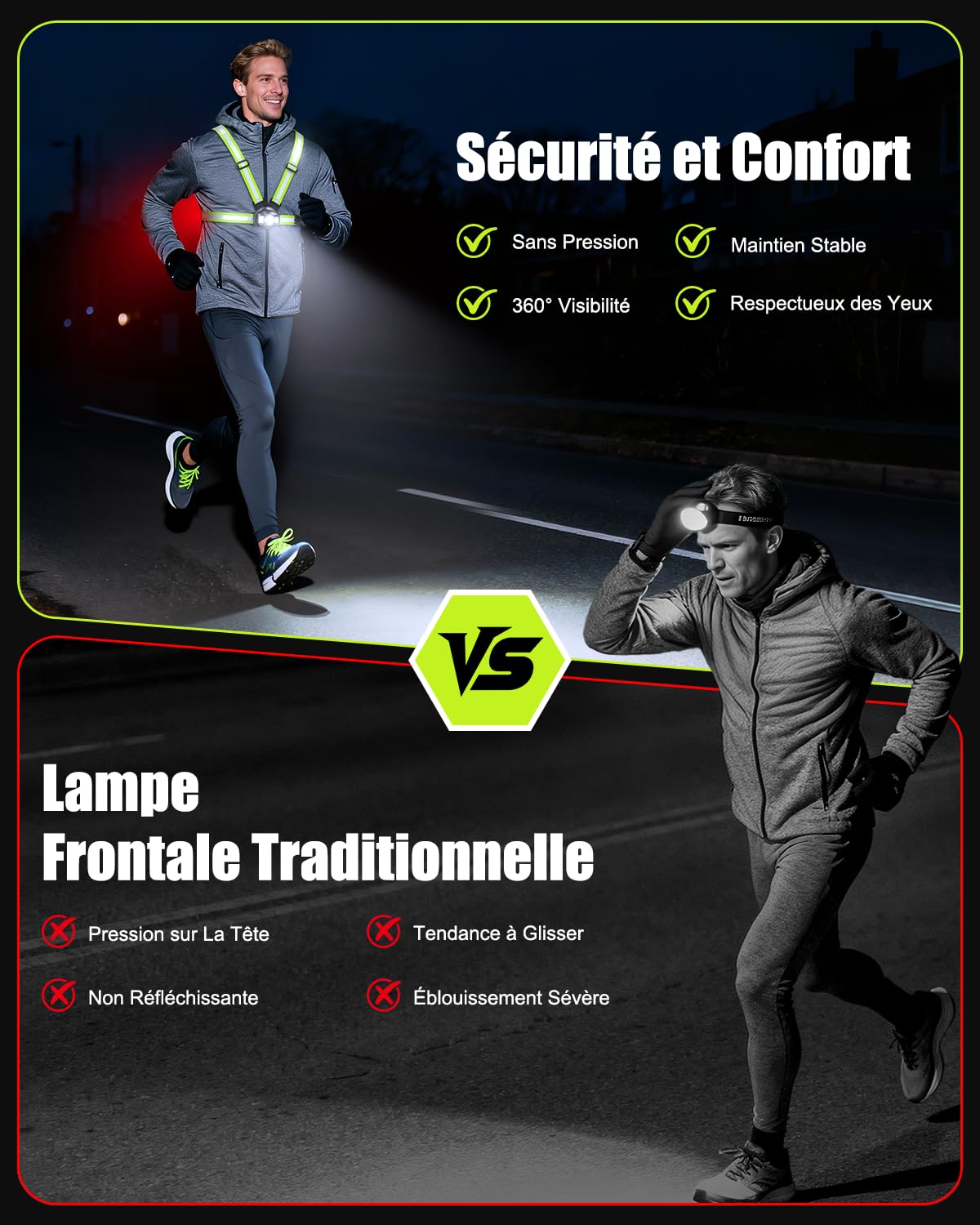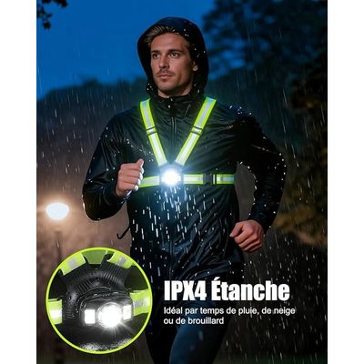 1 CHARGE RAPIDE 2 DÉTAILS, 1 Étanche 2 PORTER Bricolage - Découvrez notre offre Babacom 500LM Lampe Running Pectorale, 6 Modes Lampe Course a Pied avec Faisceau Réglable 45°, Remplacer Lampe Frontale, Recharg161 1 RUNNING 2 CYCLISME 3 PROMENADE DE CHIENS 4 CAMPING 5 JOGGING De plus, son indice de protection IPX4 la protège efficacement contre la pluie, la transpiration et les éclaboussures. [Utilisation Mains Libres Multi-Scénarios] Parfaite pour une multitude d'activités (course, vélo, randonnée, camping, pêche de nuit) sans encombrement. Lampe Course à Pied Rechargeable Lampe De Course à Pied, Angle De Faisceau Réglable à 120° 500 Lumens Bande Reflechissante A 360 Rechargeable Par Usb Lampe De Nuit Pour Le Torse A Delideal Pour Courir Escalade Peche 81565608 Frontale Running [Luminosité Ultra & Visibilité 360°] Équipé d'une LED avant de 500 lumens, cette lampe running éclaire jusqu'à 70 mètres pour des sorties nocturnes en sécurité. [Ajustable et Faisceau Orientable à 45°] Conçu avec deux bretelles, des boucles ajustables et des bandes élastiques, ce lumiere running s'adapte à toutes les morphologies en réglant la longueur des épaules et le tour de taille. De plus, le faisceau réglable à 45° vous permet d'orienter la lumière pour éclairer les sentiers lointains ou les détails proches, sans effort et avec un confort accru Elle dispose également d'un grand panneau réfléchissant arrière (visible à 200 m) et de bandes sur les bretelles, assurant une visibilité 360° et l'élimination des angles morts pendant la course ou la marche Babacom Lampe frontale LED rechargeable super lumineuse - 250 lumens - Détecteur de mouvement - Étanchéité IPX6 - 5 modes d'éclairage - Angle et sangle réglables - Lampe frontale LED pour course La fonction mémoire mémorise votre dernier mode à l'extinction (par pression longue), évitant les réglages répétitifs Ultra Luminosité & Visibilité 360°] Équipé d'une LED avant de 500 lumens, cette lampe running éclaire jusqu'à 70 mètres pour des sorties nocturnes en sécurité. Le feu arrière rouge amélioré alerte activement le trafic, tandis que les bandes réfléchissantes renforcent la visibilité latérale