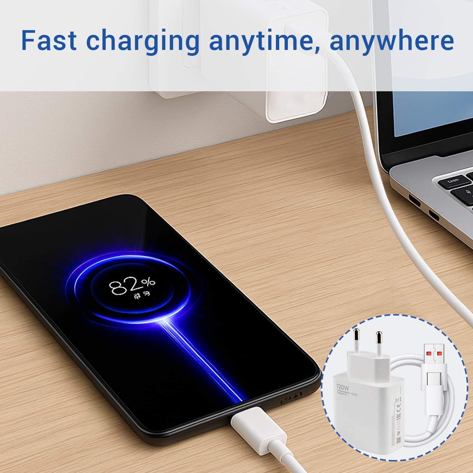 Chargeur Rapide 120W Avec Câble USB-C 1M, Bloc Chargeur USB Pour 15, 14 Ultra,13T Pro, 12T, 13 Pro, K60 Ultra Note 13 Black Shark 5, Poco F6 F5 F4 GT X6 X5