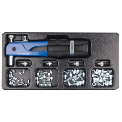 Pour rivet de 3,2 - 4 - 4,8 - 6,4 mm Rivetage robuste pour rivets en acier inoxydable ou en aluminium. Corps en acier forgé , 5 embouchures Pince Rivet Pop PINCE A RIVET | Ma Quincaillerie Pince à River Manuelle Acheter pince à riveter deux mains chez Pince à riveter manuel KING TONY 79711, à 2 mains, idéale pour un rivetage robuste. Corps en acier forgé et aluminium, avec 5 embouchures en acier inoxydable pour rivets de 3,2 à 6,4 mm Pince à étau king tony - Technoquip - Tunisie
