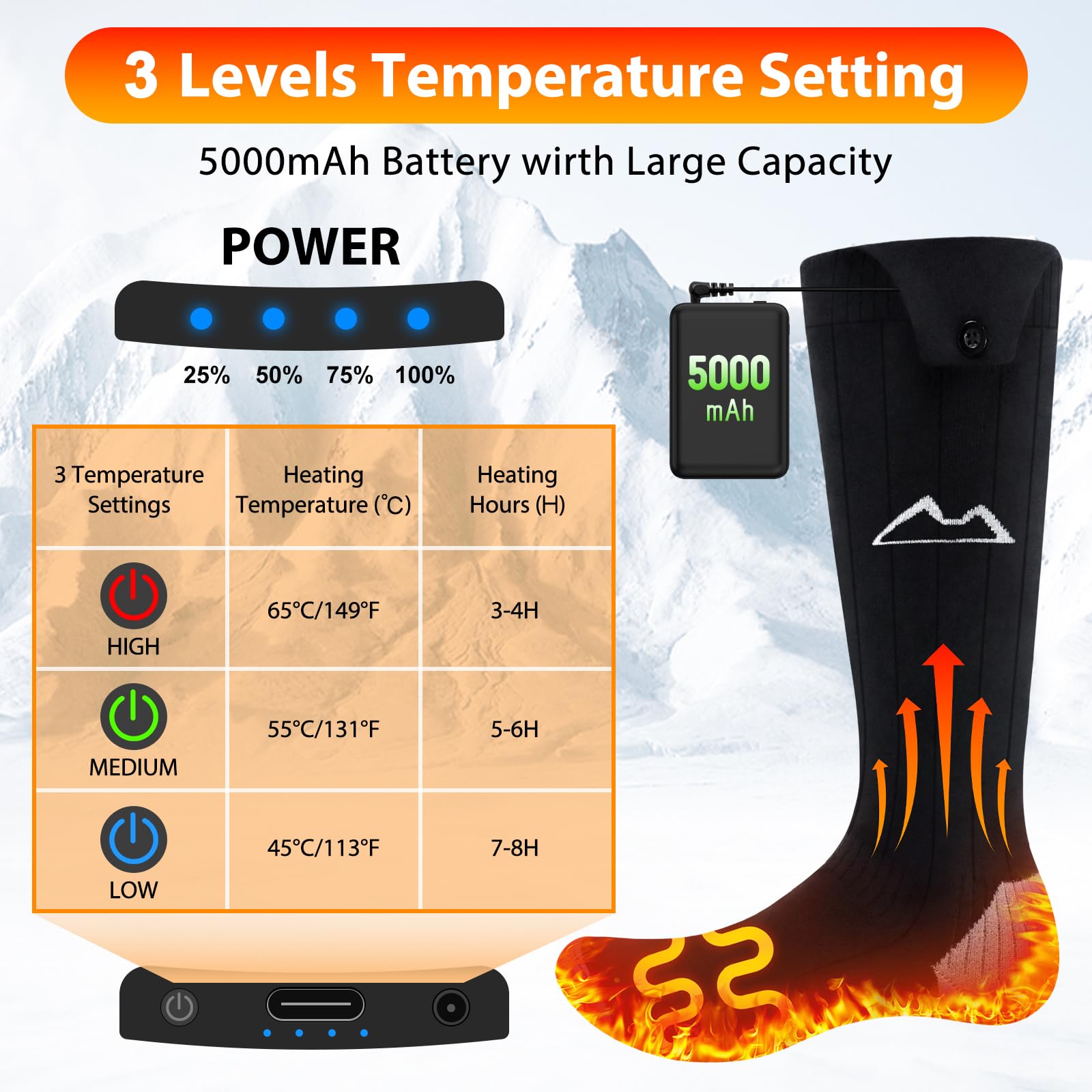 Adaptez la chaleur à vos besoins grâce aux trois niveaux de chauffage réglables (45℃/55℃/65℃). La combinaison innovante de matériaux utilise la résistance à la chaleur du PBT et l'excellente isolation thermique de l'acrylique pour une fonction de chauffage efficace. Le Modal assure une sensation agréable et respectueuse de la peau, tandis que le Nylon ajoute élasticité et résistance, renforcées par l'acrylique anti-boulochage et le matériau PBT, les rendant résistants à l'usure et à la déformation. 【Trois Niveaux de Chauffage】 Les chaussettes chauffantes offrent trois réglages de température de 45℃/55℃/65℃, que vous pouvez ajuster librement selon vos besoins. 【Batterie Longue Durée】 Batterie Lithium-Polymère de 5000 mAh, capable de chauffer en continu pendant 3 heures au niveau le plus élevé et de maintenir la chaleur jusqu'à 8 heures au niveau le plus bas, vous n'avez donc pas à vous soucier de la chaleur durable. Chaussettes Chauffante OU Chaussettes Homme Femme Chauffantes, 3 Réglages De Chauffage Chaussettes Chauffantes 5000mAh 3 Niveaux Elles sont parfaites pour les travailleurs en extérieur, les personnes âgées, la chasse, la pêche, le cyclisme, les balades à moto, le camping, le ski, la randonnée et le trekking. Le design fin de la batterie assure qu'elle ne glisse pas, même en courant. Elles sont faciles d'entretien : soit lavage à la main, soit lavables en machine dans un sac à linge spécial. Les batteries doivent toujours être gardées au sec. Chaussettes chauffantes pour homme et femme - 5000 mAh - Rechargeable - Jusqu'à 8 heures - Lavables - Chaudes - Pour l'extérieur, le travail, la pêche, la chasse, le ski, l'équitation, le camping : : ModeÀ propos de cet article Chaussettes chauffantes douces, confortables et chaudes Fabriquées à partir d'un mélange de haute qualité de 30% d'acrylique anti-boulochage, 20% de Modal, 22% de Nylon et 28% de polyester PBT, ces chaussettes offrent un équilibre parfait entre douceur, respirabilité et durabilité. Le design fin et discret de la batterie garantit un maintien sûr, même lors d'activités intenses comme la course à pied. 【Taille Mixte · Lavables】 Ces chaussettes chauffantes conviennent aux adultes, hommes et femmes, taille unique 35-46., Elles peuvent être lavées à la main ou en machine dans un sac à linge spécial. Ces chaussettes chauffantes polyvalentes sont conçues en taille mixte 35-46 pour hommes et femmes, offrant une sensation de port confortable. Achetez Loowoko Chaussettes chauffantes Homme Femme 5000mAh Rechargeables,3 Niveaux de Chauffage,Lavables,pour Le Travail en extérieur,la randonnée,la Marche,la pêche,Le Cyclisme (Chaussettes chauffantes Chaussettes chauffantes électriques - Noir - Sports d'hiver - Adulte Les chaussettes chauffantes Loowoko sont le compagnon idéal pour tous ceux qui aiment passer du temps en plein air.