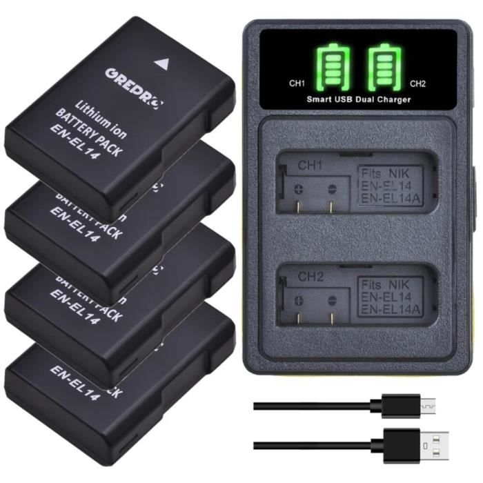 Matériau de qualité supérieure : le chargeur de caméra EN-EL14 est fabriqué en matériau de qualité supérieure, qui présente de bonnes propriétés mécaniques, des propriétés physiques et une résistance à la corrosion. Batterie EN-EL14 pour Nikon D5100, D3200, Coolpix P7100, Coolpix P7800 Largement compatible avec D5100 / D3100 / D3200 / d3300 / Coolpix P7000 / DF, etc. Ainsi, il peut résister longtemps à l'usure et a une longue durée de vie. La conception soignée rend le travail plus facile et plus efficace. Facile à installer : le chargeur de caméra EN-EL14 est facile à installer et à démonter, aucune opération compliquée n'est nécessaire, ce qui peut vous aider à gagner beaucoup de temps et à profiter du travail simple. Largement compatible ---- Le chargeur de batterie est le modèle approprié : remplacement pour D3100 / remplacement pour D3200 / remplacement pour D3300 / remplacement pour D5100 / remplacement pour D5200 / remplacement pour D5300 / remplacement pour D5500 / remplacement pour Coolpix P7000 / remplacement pour Coolpix P7100 / remplacement pour Coolpix P770., 0 / Remplacement pour Coolpix P7800 / Remplacement pour DF. Chargeur Batterie Appareil Photo Nikon Chargeur Double Pour Batterie Nikon EN-EL14 - Compatible D5300, D3400, P7100 Et Autres Modèles Chargeur Double LCD Nikon Nous utilisons des matériaux de la plus haute qualité, construits selon des normes de contrôle de qualité strictes. Avec protection contre les décharges, protection contre les courts - circuits, protection contre les surcharges, protection contre La surchauffe, il est sûr à utiliser. Chaque produit doit être testé et testé plusieurs fois avant l'expédition. Conception unique] Ce chargeur de batterie est spécialement conçu pour la batterie Nikon. pour D5100 D3100 D3200 D3300 Coolpix P7000 DF, etc. [Play and Plug] Port USB standard, compatible avec tous les appareils prenant en charge la sortie USB, pratique à utiliser Nikon D3200 EN EL14 Chargeur De Batterie Pour Appareil Photo Avec écran LCD Pour Nikon D3100 D3200 D3300 D5100 D5200 D5300 D5500, Pour Nikon Coolpix P7000 P7100 P7700 P7800, Populaire Enceinte Bluetooth Dimensions : environ 8 x 5 x 2 cm., Batterie compatible : EN-EL14., Utilisation sûre : ce chargeur est spécialement conçu pour les batteries.