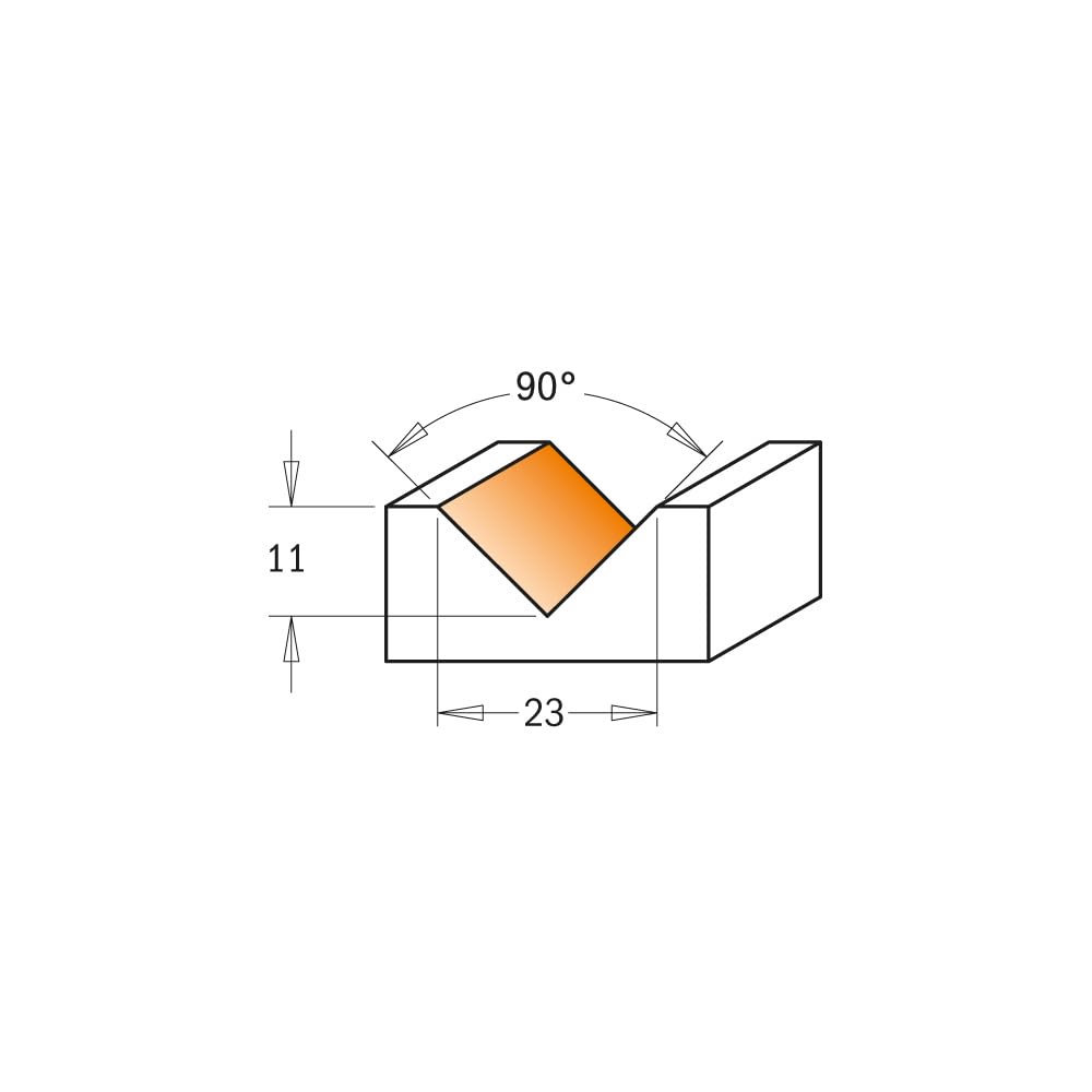 En cas d’usure, tourner la plaquette et utiliser les autres côtés pour une plus longue durée. CMT Orange Tools 665., 201., 11 - Fraise pour Rainures V 90° HW Z2 S=8 D=17X8., 5X53 DR La vis spéciale fixe la plaquette d’une manière sûre et garantit la longévité de coupe. Frässet CMT Orange Tools 5 delar 911 44298 mm 900.005.01 Recommandations de sécurité: le tournevis dynamométrique TW-006 est conseillé pour le serrage des vis. Spiralfräs CMT Orange Tools HM Z2 Hp 191.030.11 8x32/80 mm- 191.081.11 Fraises Pour Panneaux Lettres Bords Chanfreinés CMT 911.200.11 HM-FR. A RAINER D=20X20X50 Z=2 S=8 DR Fraise HW Z2 S=8 Cette fraise en V à 90° est conçue pour réaliser des rainures précises, idéale pour le travail du bois, la création de panneaux, de lettres et de bords...