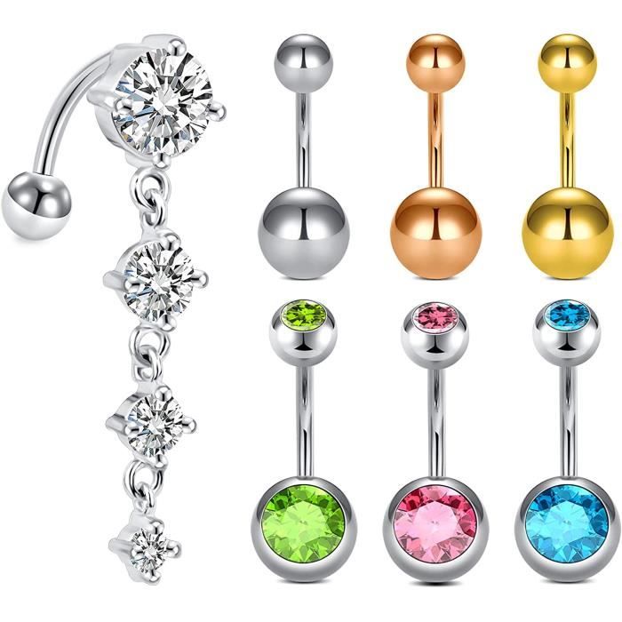 14G Navel Barbell 14G Four Leaf Clover Belly Button Ring | Red & Green CZ Shamrock Navel Barbell | 316L Surgical Steel Body Jewelry Belly Button Ring Long Piercing Nombril Homme Acier Acier Chirurgical - Lot De 2 (cristaux Et Fleur) Piercing Anneau Nombril Piercing Ventre 14G Bijoux d'inspiration botanique : le design floral avec des accents de cristal crée une pièce élégante et polyvalente pour toute collection de bijoux Cet élégant piercing de nombril de 14 g/1,6 mm arbore un délicat motif floral rehaussé d'éclatants zircones cubiques. Fabriqué en acier inoxydable 316L résistant, il conserve son aspect brillant même après un port régulier. OUFER 14G Or Piercing Nombril Acier Chirurgical 316L Fleur Piercing de Ventre Transparent/Noir Marquise CZ Anneau Nombril Belly Button Bar pour Femme 8/10 mm Son savoir-faire raffiné offre une élégance discrète pour celles qui recherchent une touche de sophistication dans leur collection de bijoux de corps. Cet élégant piercing de nombril de 14 g/1,6 mm arbore un délicat motif floral rehaussé d'éclatants zircones cubiques. Disponible en finition dorée ou acier, il est disponible en longueurs de 8 et 10 mm pour un ajustement confortable et sûr, quel que soit le piercing Calibre confortable des Percing Au Nombril : Épaisseur de la barre : 14G/1,6 mm ; longueur de la barre : 8 mm pour un ajustement sûr et confortable dans la plupart des piercings de nombril Disponible en finition dorée ou acier, il est disponible en longueurs de 8 et 10 mm pour un ajustement confortable et sûr, quel que soit le piercing.