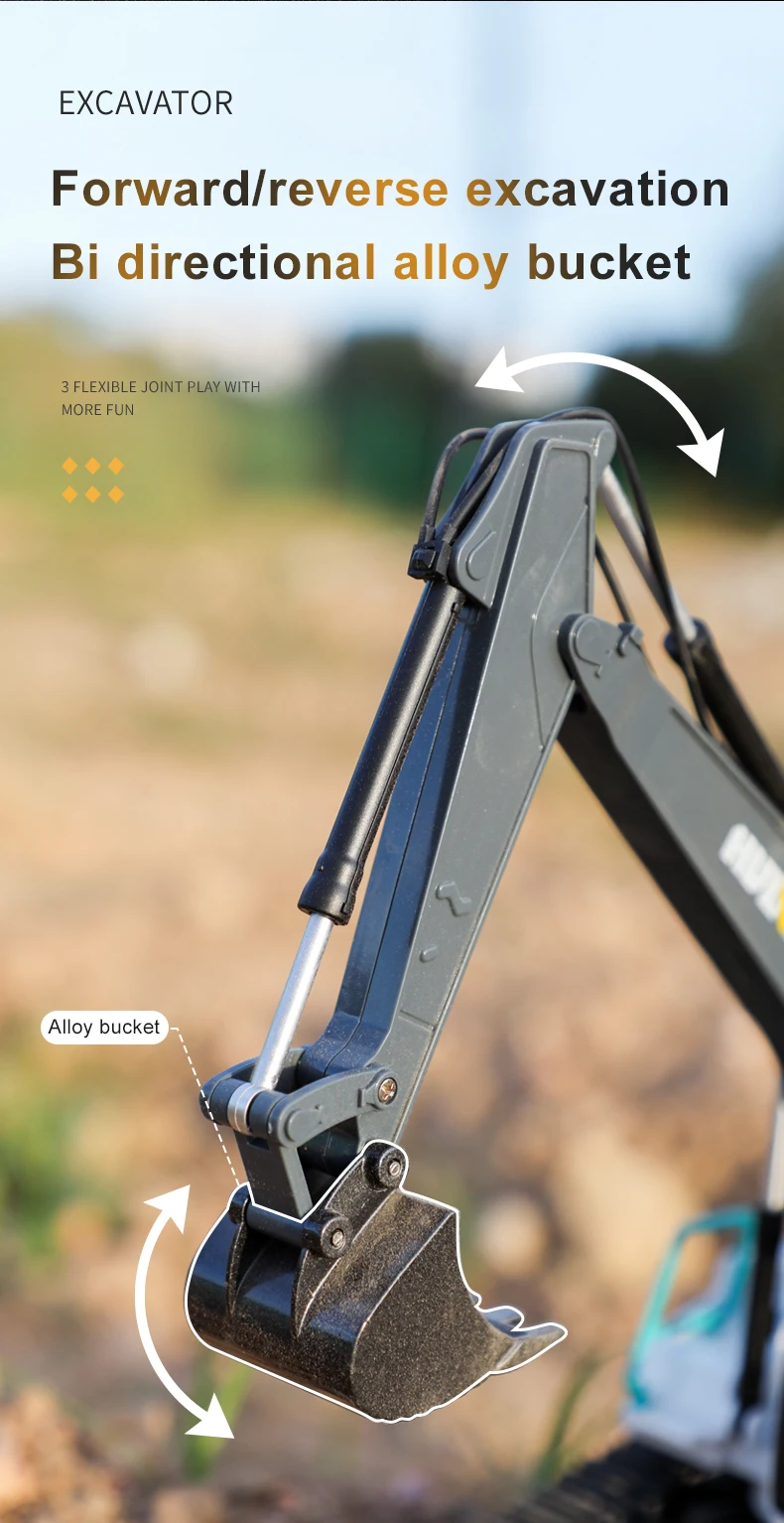 Jouet Pelleteuse Télécommandée - ZGEER - Modèle 1:24 - 6 Canaux Jouet Construction Garçon 3-9 Ans 1:24 Pelleteuse Télécommandée Pour Enfants 3-9 Ans, Camion Jouet Construction 1:24 2.4GHz Offrez-la pour un anniversaire, Noël ou Pâques : vous deviendrez instantanément leur héros! Tout en s'amusant, les enfants améliorent leur coordination œil-main et découvrent les bases de la pensée ingénieuse. Fabriquée à partir de matériaux robustes, cette pelle jouet est non seulement durable, mais aussi conçue dans un souci de sécurité pour que les parents aient l'esprit tranquille lorsqu'ils jouent avec. Pelle télécommandée simulée cette pelleteuse télécommandée est fabriquée en plastique ABS de haute qualité et en alliage. La pelle en alliage synthétique, le bras hydraulique, la cabine réaliste et les rails en caoutchouc élastique sont exquis Parfaite pour creuser dans le sable, la terre ou même la neige, elle incite les enfants à sortir et à laisser libre cours à leur imagination. Description Les enfants vont adorer cette pelleteuse télécommandée Auniq ! À l'échelle 1:24, elle reproduit fidèlement une vraie excavatrice avec des détails super réalistes. Contrôle à 2.4GHz pour une portée de 6m sans interférence - elle peut avancer, reculer, tourner et même faire pivoter sa cabine à 270° ! Les lumières LED et les effets sonores rendent le jeu encore plus... Cadeau idéal pour enfants: Cette pelleteuse télécommandée, à la fois ludique et facile à utiliser, est le cadeau parfait pour initier les enfants aux engins de chantier ! Idéale pour développer la créativité des enfants tout en s'amusant!