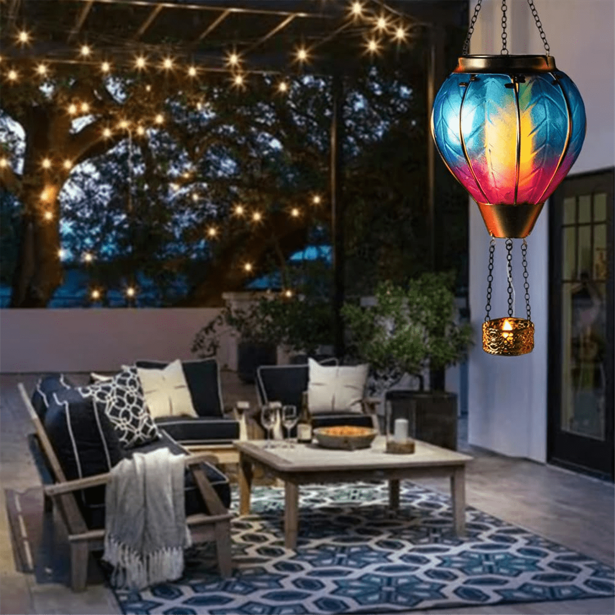 Lanterne de Ballon à Air Chaud Solaire Art & Cadeau - Lumières LED Lampe Led Solaire Exterieur Lanterne Solaire Améliorée Lanterne Solaire Flamme Clignotant Lanterne Solaire 22 LED Batterie 600mAh [Idée Cadeau Parfaite]: Un cadeau idéal pour la famille et les amis, cette lanterne solaire décorative est un cadeau charmant et pratique pour les accouchements, les anniversaires ou toute occasion spéciale. Ballon à Air Chaud Lanterne Solaire Vidéo de marchand Le verre coloré de haute qualité et la finition brillante créent une apparence étonnante. Avec ses ampoules LED, ce lampion solaire style ballon à air chaud diffuse une lumière douce, créant une ambiance apaisante. Sa lumière à effet flamme ajoute un attrait visuel subtil, idéal pour les barbecues ou autres événements en extérieur Pas de câblage ou de frais supplémentaires - placez-le simplement dans un endroit ensoleillé pour une charge optimale. Argent--Lanterne Solaire Imperméable À Led, Rechargeable, Avec Power... [Décoration Suspendue Polyvalente]: Contrairement aux lampes solaires traditionnelles, cette lanterne est livrée avec une chaîne en métal pour une suspension facile, ce qui la rend parfaite pour les porches, pergolas ou patios. [Charmant Design de Ballon à Air Chaud]: Cette lanterne solaire élégante présente une forme délicieuse de ballon à air chaud avec un panier en métal correspondant, ajoutant une touche capricieuse et attrayante à votre jardin, balcon ou terrasse.