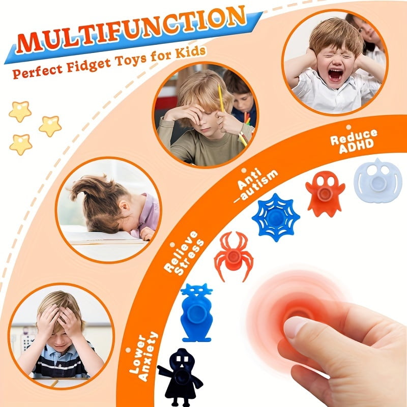 Convient aux enfants, adolescents et adultes, ce jouet garantit plaisir et divertissement à tout moment Idéal pour calmer la nervosité ou combattre l'ennui, il offre une solution simple pour se détendre tout en occupant vos mains Parfait pour Halloween: Avec ses éléments uniques inspirés d'Halloween, ce spinner est le jouet idéal pour la saison. Présentation du produit 4 pcs Toupies En Bois Jouet Drôle Peg-top Éducatifs Gyro Jouets pour Enfants HAND - - JOUET ANTI-STRESS Description La toupie est l'un des jouets les plus classiques du passé Jouets sensoriels transformables pour soulager le stress pour enfants et adultes, gyros du bout des doigts, jouet sensoriel... Que ce soit en voiture, en avion, au camping, à l'école ou au bureau, profitez de ses effets relaxants et amusants partout et à tout moment 6 couleurs Tri-Spinner 3D main Spinner doigt jouet anti-stress pour Idéal pour calmer la nervosité ou combattre l'ennui, il offre une solution simple pour se détendre tout en occupant vos mains Facile à utiliser: Aucun assemblage requis – tenez le centre du spinner avec un doigt et faites-le tourner avec l'autre main. Jouet Anti Stress Halloween 3 PCS Jouet À Presser,Jouet Anti Stress Spongieux Au Bureau,Jouet à Presser Spongieux,Mini Soft Hand Spinner Ce jouet intuitif est simple à manipuler, permettant à tout le monde de s'amuser immédiatement Cadeau parfait pour enfants: Ce spinner à main est une idée cadeau idéale pour Noël, Halloween, anniversaires, fêtes et autres occasions spéciales. Convient aux enfants, adolescents et adultes, ce jouet garantit plaisir et divertissement à tout moment Compact et pratique: Grâce à sa taille compacte, ce jouet de poche se glisse facilement dans votre sac ou votre sac à dos.