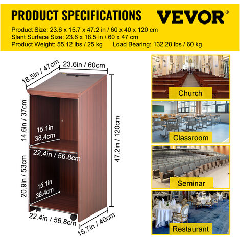 VEVOR Pupitre de Conférence Lutrin Debout Étagère Podium Il résiste aux déformations, aux rayures et à l'usure, conservant un aspect propre et professionnel même en cas d'utilisation fréquente. Sa conception intuitive assure une installation fluide. Spécification Numéro de modèle de l'article : B-1022 Sa surface lisse est facile à nettoyer, alliant fonctionnalité et esthétique épurée. Son design noir élégant et incurvé allie durabilité et style moderne et est idéal pour les écoles, les réunions, les événements, les églises et les salles de classe Support podium, manutention par une seule personne Ce pupitre léger est conçu pour être transporté seul. 1 x cadre latéral gauche 1 x panneau d'étagère Fonctionnalités pratiques pour une utilisation quotidienne Ce pupitre comprend un porte-gobelet, une étagère de rangement, un range-livres et un large plateau, alliant fonctionnalité et praticité. Simple et rapide, quelques minutes suffisent pour démarrer Transport facile Conçu pour être facilement transporté, ce podium est suffisamment léger pour être transporté et installé facilement par une seule personne dans différents lieux. Taille du panneau : 23,43 x 15,75 pouces / 595 x 400 mm Contenu du coffret 1 x Manuel d'utilisation Construit pour durer Doté d'une structure robuste, ce podium offre une excellente capacité de charge et une durabilité à long terme. Son design portable et son style neutre s'intègrent parfaitement à tous les espaces, ce qui en fait un choix fiable pour l'enseignement, les conférences ou l'organisation d'événements Polyvalent pour tous les environnements : ce pupitre est idéal pour les salles de classe, les mariages, les réunions, les discours, etc. Capacité de poids : 22 lb / 10 kg 1 x cadre latéral droit, 1 x porte-gobelet Caractéristiques principales Design incurvé stable et élégant Ce podium de 110 cm de haut est doté d'un plateau de 59,5 x 40 cm soutenu par un cadre en fer robuste pour une stabilité optimale. Surface Lecture 59.5x40cm VEVOR Pupitre Portable Présentation Hauteur Réglable 76,5-109 Cm Support Ordinateur Portable Sur Lutrin Portable Avec Rangement Porte-gobelet 2 tubes de connexion arrière, 1 x barre d'arrêt, 1 x kit de vis Compact, léger et fabriqué à partir de matériaux durables, il se soulève et se repositionne facilement sans outils ni aide, ce qui le rend idéal pour les enseignants et les intervenants nécessitant une mobilité fréquente. Achetez Pupitre de Conférence 118 cm, Podium en Métal, Lutrin pour Présentation avec Large Surface de Lecture, Compartiment de Rangement Ouvert, Butoir de Livre, Porte-gobelet, pour Bureau École au prix le plus bas, livraison en 2 jours, retour sous 30 jours. Achetez maintenant chez Rangement ouvert, accès rapide : Ce podium métallique comprend une étagère ouverte et un support latéral pour ranger micros, ordinateurs portables, télécommandes ou tablettes.