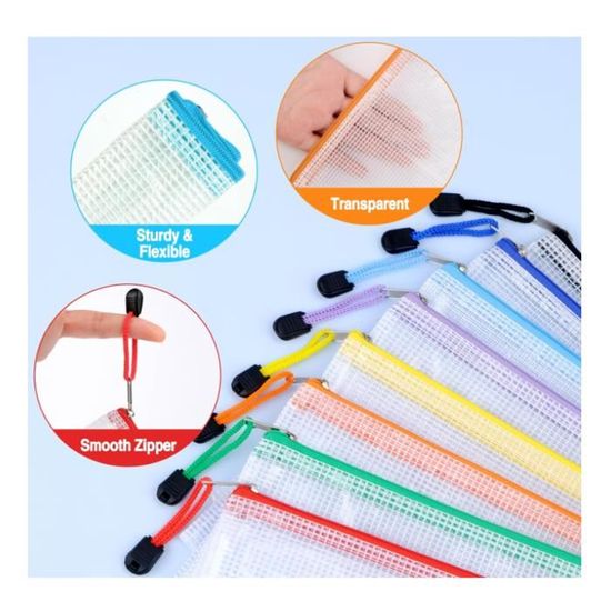 【Solide】Le Pochette Rangement est fait de matériau en PVC épaissis de l'environnement, qui est étanche et étanche, résistant aux rayures et résistant à l'usure, et ne sera pas facile à s'estomper ou à déchirure après une utilisation à long terme. La conception de grande capacité répond facilement à toutes sortes de besoins de stockage! Dans le même temps, le matériau est léger et doux, et peut être plié et stocké, économisant de l'espace. WISYOK 24 bolsas para documentos A4, impermeables de malla con 【Pratique et Portable】La conception de fermeture à glissière lisse du Pochette Plastique Zippée est facile à ouvrir et à fermer, à sceller et à empêcher la chute; La conception réfléchie de la lanière peut être transportée ou suspendue, ce qui le rend plus pratique pour effectuer des voyages d'affaires. 12 Pièces Pochette Document Plastique A4, Perforées Extensibles Pour Dossiers, Enveloppe Transparente, Porte-Documents Avec Rabat Pour Classement Bureau Maison 6 Couleurs (A Pochette Plastique HTTYHT 5 PCs Porte-documents A4 Pochette Transparente Enveloppe De Documents Pochette En Plastique étanche Avec Bouton Pression Et Carte Pour Voyage Bureau Documents Scolaires Organisateur Documents Porte Document Grand pochettes dossier sachets (33,5 × 24 cm / 29 × 20,5 cm) : Rangement facile pour les dossiers, cahiers et dossiers A4. Moyen et grand pochette fermeture (23,5 × 17 cm) : Idéal pour les manuels scolaires, les cahiers d'exercices et les tablettes fines