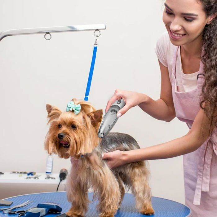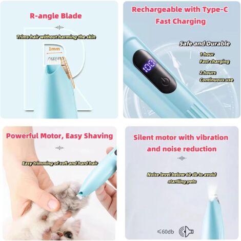 Tondeuse Chien Chat Professionnelle Tondeuse Animaux Tondeuse Professionnelle pour Chien et Chat Tondeuse Toilettage Lame 18 Mm Tondeuse De Pattes De Chien, Tondeuse Pour Chat Rasoir Avec Lumière LED Tondeuse Pattes De Chien Led Son format compact assure un confort maximal lors de chaque toilette ! Vous pouvez ainsi gérer optimalement les performances, être sûr que la tondeuse est toujours prête à l’emploi et éviter les décharges surprises – idéal pour une toilette sans accroc. La lame en acier inoxydable de 18 mm de large augmente la surface de rasage et améliore l’efficacité, notamment pour la tonte de petites zones comme les interstices entre les griffes ou les parties cutanées sensibles. Tondeuse pour animaux sans fil | DOG UNIVERSE 💧 Design étanche Grâce à son design étanche, la tondeuse peut être utilisée en toute sécurité sous la douche et nettoyée directement sous l’eau courante après la toilette. Tondeuse pour pattes de chien Prendre soin de votre chien à la maison est un jeu d'enfant avec une tondeuse adaptée pour entretenir ses pattes. Pour éviter les blessures et les irritations, choisissez un modèle spécifiquement conçu pour les animaux 🔌 Rechargeable USB avec design compact Associe une puissance de tonte efficace à une recharge USB pratique, se recharge via un câble de données ou des appareils USB domestiques – flexible et simple. 🔘 Utilisation simple Extrêmement conviviale, appuyez simplement sur un bouton pour démarrer – facile à manier même pour les débutants sans expérience.