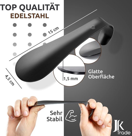 Design intemporel : les chaussons à chaussures suspendus en acier inoxydable de JK-Trade sont livrés dans une forme simple et élégante. Ils disposent d'un trou pour accrocher dans l'entrée et grâce au crochet, le pied tient parfaitement dans la main Design intemporel : les chausse-pieds suspendus en acier inoxydable de JK-Trade sont livrés dans une forme simple et élégante. Cuillère à Chaussures Stable JK Trade® L'original | Chausse-pied Stable En Acier Inoxydable De 42 Cm Chausse-pied Métal Avec Crochet Design élégant Cuillère à chaussures stable : avec une longueur de 29 cm et une épaisseur de 2,0 mm, nos chausse-pieds sont extrêmement robustes et ont une longue durée de vie. Vous recevrez des chausse-pieds de qualité supérieure avec bords arrondis. Avec le chausse-pied JK-Trade, l'enfilage des chaussures est aussi rapide et facile que jamais. Petite cuillère à chaussures : la taille compacte d'environ 15 cm et un poids d'environ 54 g est idéal pour une utilisation dans les bagages à main. Avec le chausse-pied noir JK-Trade, l'enfilage des chaussures est aussi rapide et facile que jamais. Signaler un problème avec ce produit Chaussure Pied Métal Chausse-pied En Métal Marqué Du Logo Santoni Shoes Chausse Pied Métal 16cm Pour les jeunes et les moins jeunes : avec notre chausse-pied design, les adolescents, les adultes et les personnes âgées auront beaucoup de plaisir et gagneront un temps précieux lors de l'enfilage de vos chaussures. Ils disposent d'un trou de suspension dans l'entrée et grâce au crochet, le chausse-pied tient parfaitement dans la main. Il n'est possible de plier un chausse-pied qu'avec un effort accru.