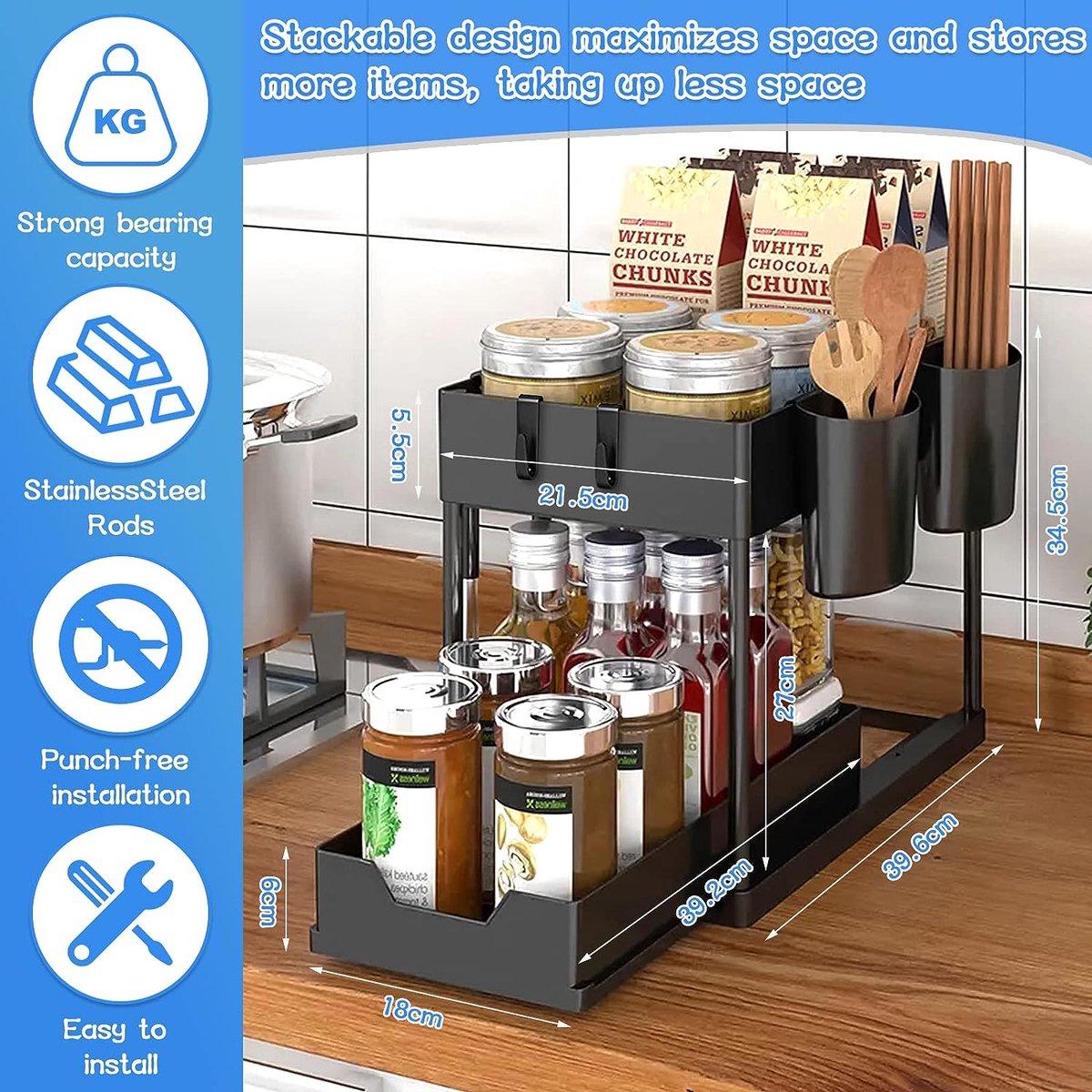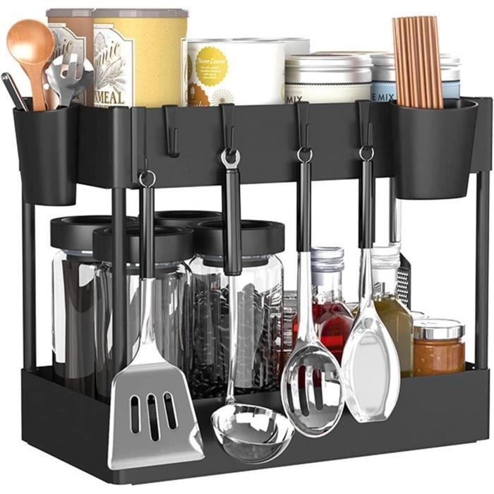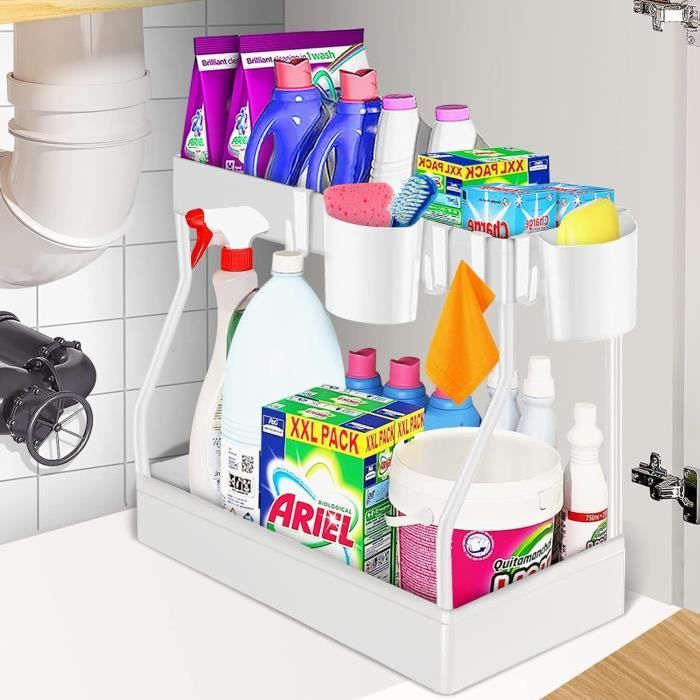 OUUTMEE Rangement sous Évier en Plastique, Étagère Coulissante sous Évier à 2 Niveaux, Organisateur sous Evier avec 4 Crochets et 2 Coupelles de Suspension pour Cuisine, Salle de Bain (Noir) Organisateur sous Evier avec 4 Crochets et 2 Coupelles de Suspension pour Cuisine, Salle de Bain (Noir) · Plastique · 5,05,0 sur 5 étoiles (2) · 19,99 €19,99 【Robuste et Durable】Le rangement coulissant sous l'évier est fabriqué en plastique ABS de haute qualité et en tiges de support en métal épaissi. Parfaite pour ranger les produits de nettoyage, les grandes bouteilles, les articles de garde-manger ou les produits cosmétiques - idéale pour les cuisines, les salles de bains ou même les bureaux. Un must pour les maisons modernes! Rangement Cuisine DEPAOTLUX Rangeent Sous Évier,Étagère Sous Évier Coulissante Accessoire Rangement Produits Nettoyage Il est plus stable et peut supporter jusqu'à 10 kg. 【Rapide à Installer et Facile à Nettoyer】Aucun outil n'est nécessaire pour installer l'organisateur là où vous en avez besoin ; il est amovible et lavable. 【Polyvalent pour Toute Pièce】En plus de son utilisation sous l'évier, cet organisateur de rangement permet de désencombrer les comptoirs, les armoires ou les garde-manger. La base est équipée de 4 patins antidérapants pour éviter les glissements. Organisateur Sous Évier Étagère Épices Coulissante Panier Rangement L'organisateur de cuisine est livré avec 2 gobelets suspendus et 4 crochets, et de multiples pièces pour gagner plus d'espace de stockage. Rangement sous évier, Organisateur de Rangement sous évier en ABS à 2...
