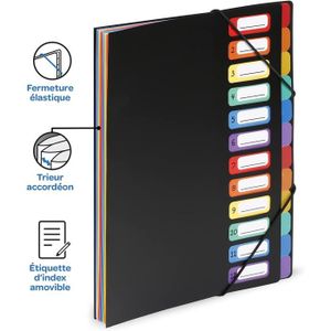 Rangement Feuilles A4 Fermeture Pression Esselte - Trieur à 12 Compartiments Pour Documents A4, Pochettes En Plastique Transparent, Maison / Bureau, Motif Texturé, Gamme Colour'Breeze, Multicolore, 626256 Classement Papier 12 Compartiments Plastique Le dossier rangement documents est idéal pour ranger des documents dispersés. Trieur A4, 12 Copartients Trieur Extensible, Accordéon Porte Docuents Extensible en Plastique... Trieur en polypropylène 12 compartiments, fermeture par élastiques, couverture coloris noir. Format 24x32 cm pour documents A4. Fenêtres imprimées, intérieur multicolore Nous vous fournirons un service après-vente satisfaisant et vous offrirons une expérience d'achat agréable. 【Multifonction】ce classeur trieur compartiments a4 est idéal pour organiser vos documents, notes, photos, lettres, formulaires, factures, etc., au bureau. Trieur en polypropylène 12 compartiments, fermeture par Cette fermeture à pression assure non seulement la confidentialité, mais est également facile à ouvrir et à fermer, vous offrant une expérience de travail plus détendue et agréable. Nom du produit :Classeur Trieur Caractéristiques : 1., Le classeur range document aux couleurs douces est non seulement élégant et mignon, mais sert également de rappel visuel pour faciliter le classement. Applications : Ce système organisateur document est largement utilisé et convient à de nombreuses situations, notamment dans les écoles, les bureaux, les universités, les hôpitaux, les entreprises et les bibliothèques. Spécifications du produit : Matériau : Plastique Dimensions : 32 x 25 cm Couleur : Vert, Rose Contenu : 2 x trieur 12 compartiments Service client Si le produit que vous avez reçu est inutilisable, endommagé ou ne vous convient pas, veuillez nous contacter. Il est idéal pour ranger documents, portfolios, relevés bancaires, photos, cours et devoirs. Son matériau imperméable et résistant à l'humidité garantit la conservation de vos documents et prévient les dommages et les déformations, vous permettant ainsi de ranger facilement vos documents importants. 【Excellent Matériau】Le trieur document est fabriqué en PP écologique de haute qualité, répondant aux normes d'archivage et permettant un stockage sécurisé. Grâce à ces magnifiques classeurs trieur document a4, vous serez plus motivé à organiser vos affaires de manière ordonnée., 2., Léger et compact, ce classeur pochette rangement papier est idéal pour transporter vos documents et vous accompagner au quotidien au bureau !, 3., Le classeur trieur documents administratif plastique vous permet non seulement d'organiser vos documents à l'école, à la maison, au travail et au bureau, mais il remplace également parfaitement les mallettes.