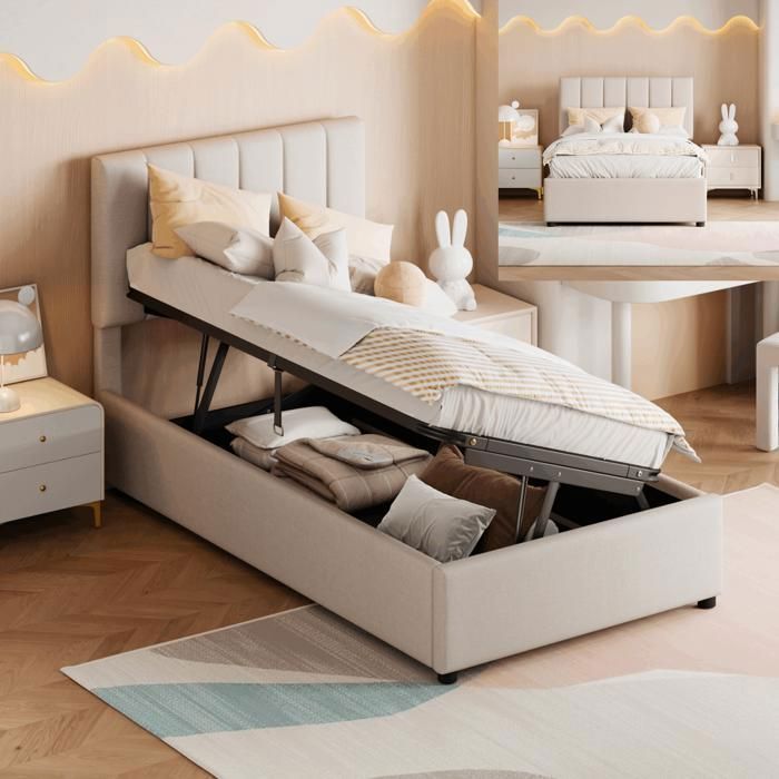 Description + Dimensions Matériau du lit : lin + MDF Taille : 140 x 200 cm Couleur : Beige/Gris Nombre de colis : 2 Assemblage requis : Oui Dimensions du produit : 201 x 141 x 32 cm Dimensions du colis : Veuillez vous référer aux spécifications Dimensions intérieures du lit : 140 x 200 cm Hauteur totale : 32 cm Capacité de poids : 226 kg Épaisseur recommandée du matelas (sans matelas) : 10-15 cm Remarques ※ En raison de la mesure manuelle, il peut y avoir une erreur de 2 à 3 cm. Le design minimaliste sans tête de lit brise les contraintes traditionnelles, simple mais sans perdre de style, apportant une touche de modernité et de liberté à votre chambre. EN STOCK : Lit coffre paris 90 x 200 cm avec sommier à lattes relevable blanc pas cher - Retrait & Livraison - Paiement 4X disponible. Chambre adulte à prix discount DescriptionStyle minimalisteLe design du lit coffre minimaliste mais élégant s'adapte bien à la plupart des styles d'intérieur.Espace de rangementGrand espace sous le sommier à lattes relevable grâce à la barre hydraulique vous permet d'y mettre des boîtes de rangement ou des bagages.Tête de lit confortableLa tête de lit rembourrée est très agréable, vous pouvez y vous adosser... Ils n’arriveront peut-être pas en même temps., Veuillez patienter. Lit 1 place 90x200cm, lit coffre avec lignes dorées, led, tête de ※ Si vous avez des questions lors de l'installation, veuillez nous contacter dès que possible. Système de stockage hydraulique innovant : l'espace de rangement caché peut être facilement ouvert avec une clé, de sorte que les ustensiles sont invisibles et que l'environnement domestique est plus rangé et organisé. Lit 1 Personne Sommier Lattes Lit Coffre 90 X 200 Cm En Coton Gris Clair - Sommier à Lattes- Coffre De Rangement - Sans Matelas - Maison Lit Design Moderne Lin Beige En même temps, il peut être facilement intégré dans une variété de styles de maison, qu'il s'agisse de simplicité moderne ou de style scandinave, peut être parfaitement assorti. Lit rembourré, support hydraulique, sans tête de lit, sans matelas Ce lit plat est fait de lin et de MDF, alliant goût naturel et durabilité, vous offrant un nouveau choix pour une maison écologique et élégante. Conception innovante du système de stockage hydraulique, en un seul clic, vous pouvez facilement ouvrir l'espace caché, de sorte que les courses soient invisibles, l'environnement domestique est plus propre et bien rangé.