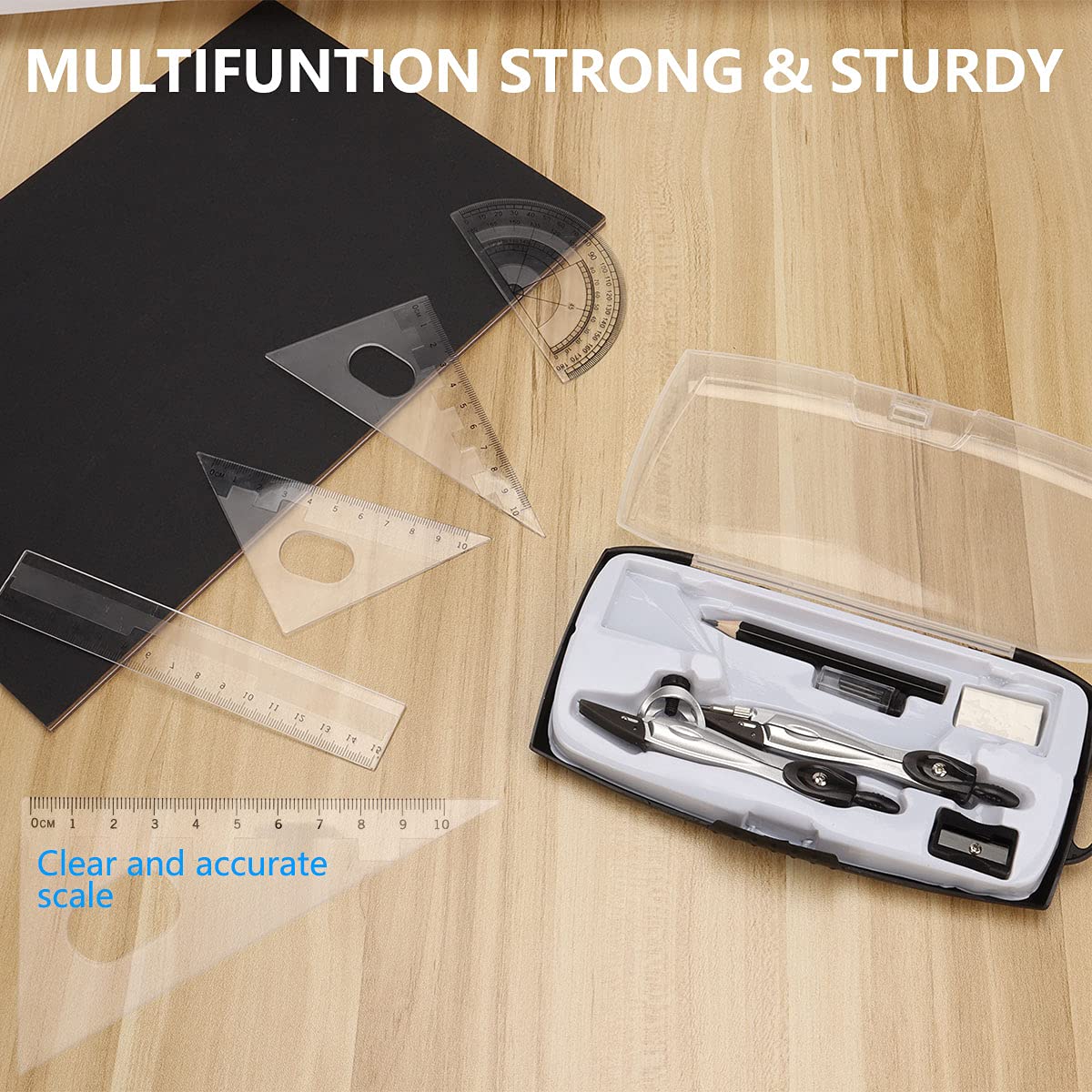 Kit De Géométrie Pour Étudiants - Règle Capybara Kids École Outils Dessin Technique Architecture Compas De Dessin Outils De Dessin Kit De Géométrie Mathématique Ensemble De 8 Fournitures For étudiants Kit Mathématique Complet 16 Pièces Kit de géométrie : y compris des gommes et des modèles, ce kit de géométrie offre une gamme complète d'instruments de conception qui répondent à tous les besoins et fonctionnent comme un compagnon académique idéal pour un travail précis et efficace Étudiants, enseignants, architectes et ingénieurs peuvent compter sur ces fournitures pour répondre à leurs besoins de conception et de mesure. Matériau : ABS + acier inoxydable + alliage d'aluminium Contenu : 1 jeu de géométrie ( Remarque : En raison des effets de l'éclairage pendant la prise de vue et des différents réglages du moniteur, les couleurs du produit sur l'image peuvent différer légèrement de la couleur Les mesures étant prises à la main, les tailles indiquées peuvent varier de 1 à 2 cm. Kit de géométrie mathématique facile à utiliser, 10 pièces, fournitures pour étudiants pour le dessin et les dessins avec boîte de rangement incassable Résultats précis : assurez-vous Facile à transporter : chaque lot a une boîte de rangement résistante aux chutes de couleur correspondante pour un rangement facile des outils ; la boîte a une taille compacte, et il y a un crochet sur son dessus, qui peut être accroché et rangé sans prendre trop de place BAUER BAUER : traité avec de l'acier inoxydable et de l'alliage d'aluminium, ce kit de géométrie présente une finition soignée, ce qui le rend résistant à la déformation tout en offrant une utilisation fiable sur une longue période Dimensions du produit : environ 28 x 15,5 x 5 cm.
