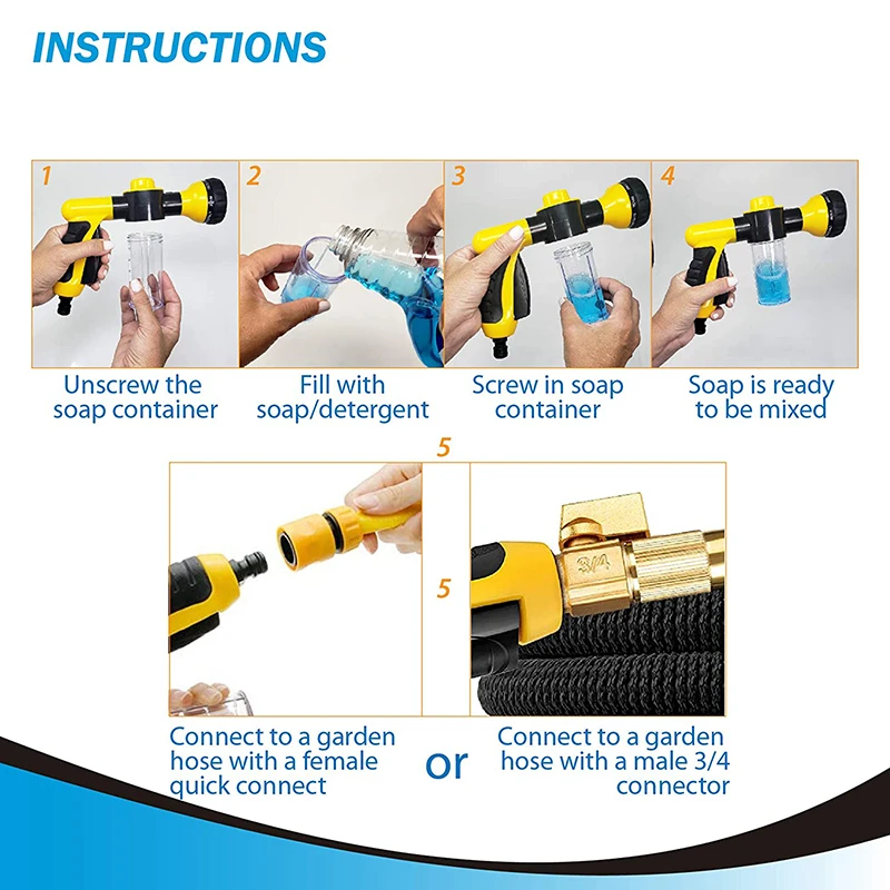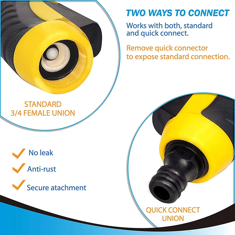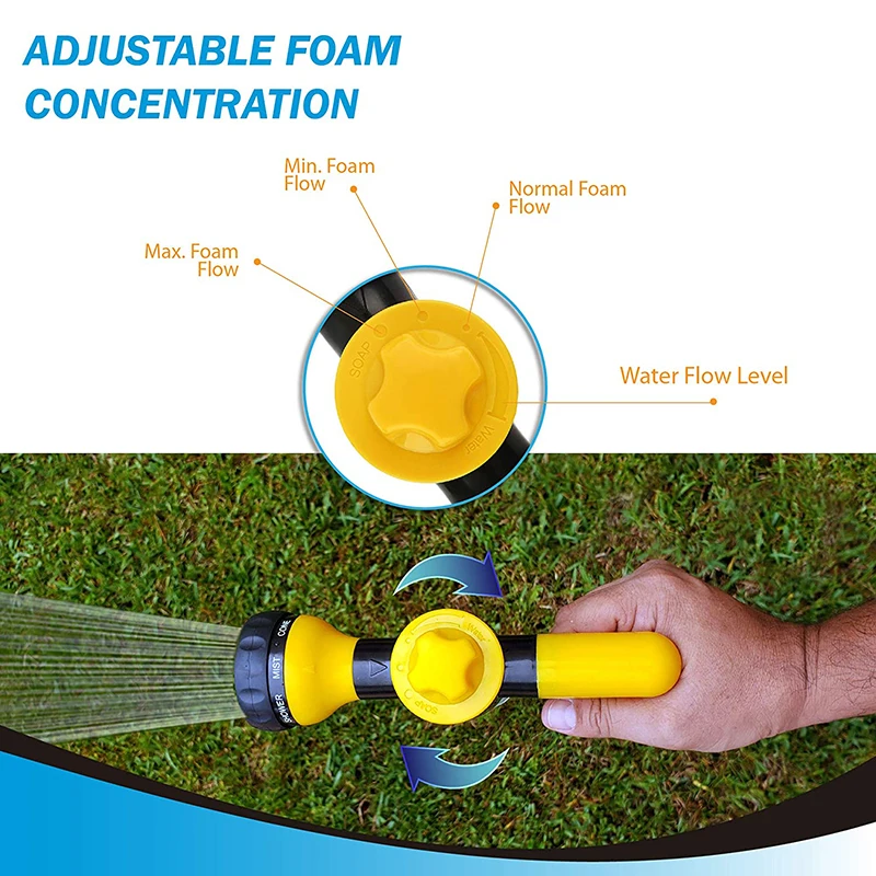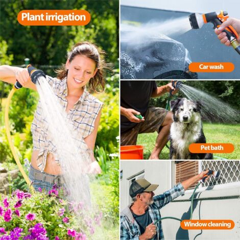 Centre : pour verser le sol. 8 modes de pulvérisation réglables pour répondre à tous vos besoins d'arrosage. Réglez le volume d'eau et la pression de l'eau avec une touche de contrôle, sans maintenir l'interrupteur de sortie d'eau enfoncé Caractéristiques : Pression de fonctionnement : 0-8 bar / 0-120 psi. Poignée antidérapante avec revêtement en caoutchouc, prise en main confortable et plus facile à utiliser. Le bouton de contrôle du débit d'eau vous permet de régler la pression de l'eau en fonction de vos besoins. Cône : pour rincer le savon des voitures. 3 bagues d'étanchéité. Facile à utiliser : fixez simplement votre tuyau d'arrosage au connecteur du tuyau d'arrosage de pelouse et allumez le robinet. À mesure que la pression de l... Taille du connecteur : 1,9 cm. Pistolet d'arrosage et de nettoyage - Suan - 8 Jets - Kit complet avec raccords Pistolet Tuyau Arrosage Buse De Tuyau D'arrosage Réglable Haute Pression 8 Modes D'arrosage Avec Pulvérisateur De Savon De 99,2 G - Buse En Mousse Pour Lavage De Voiture, Douche D'animaux Domestiques (vert Jet : pour un arrosage longue distance. 8 modes de pulvérisation réglables : choisissez simplement ce que vous voulez. 8 fonctions d'arrosage : Seau : pour remplir les seaux et les arrosoirs Plat : pour un arrosage en douceur. Rinçage : pour le nettoyage de petites surfaces. Douche : pour la douche des animaux domestiques.