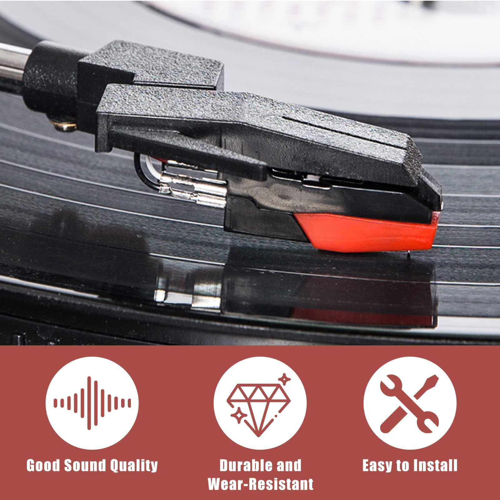 Contenu de l'emballage : Comprend 2 aiguilles de rechange pour platine vinyle, mesurant chacune 1,85 x 1 cm. Présentation du produit 2 pièces aiguilles pour platine vinyle, Pointe en saphir diamant, Remplacement en ABS et aluminium pour DIAMANT POUR PLATINE VINYLE Matériaux de qualité : Fabriqué en plastique ABS durable et aluminium, avec une pointe en céramique rubis Chaque aiguille est équipée d'un capuchon protecteur et d'une mousse pour éviter les dommages. Installation facile : Conçu pour une utilisation intuitive, le stylet de la platine peut être installé ou remplacé rapidement et sans effort à la main. Conseil important : Pour garantir un ajustement parfait, comparez les dimensions et le modèle de votre platine avec les spécifications indiquées avant l'achat. Aiguille 4-6g Pression ADC Pointe De Lecture De Remplacement Pour Platine Disque Vinyle 2/2 Style Tourne-disque Pression 4-6g Des informations détaillées sont disponibles dans la description du produit Compatibilité étendue : Cette aiguille rotative est interchangeable et compatible avec une large gamme de platines vinyles. Veuillez consulter la description du produit pour vérifier la compatibilité avec votre modèle spécifique Matériaux de qualité : Fabriqué en plastique ABS durable et aluminium, avec une pointe en céramique rubis. Notre top 10 des Saphir Diamant Pour Platine au France La pression de l'aiguille de 4 à 6 g garantit une longue durée de vie tout en protégeant votre appareil d'enregistrement et en offrant un son clair et agréable Matériau Premium: en plastique ABS de haute qualité et en aluminium, avec un stylet en céramique rubis (pression d'aiguille de 4 à 6 g), lumière et délicate, ne nuira pas facilement au lecteur d'enregistrement.Faites votre musique plus claire et plus agréable