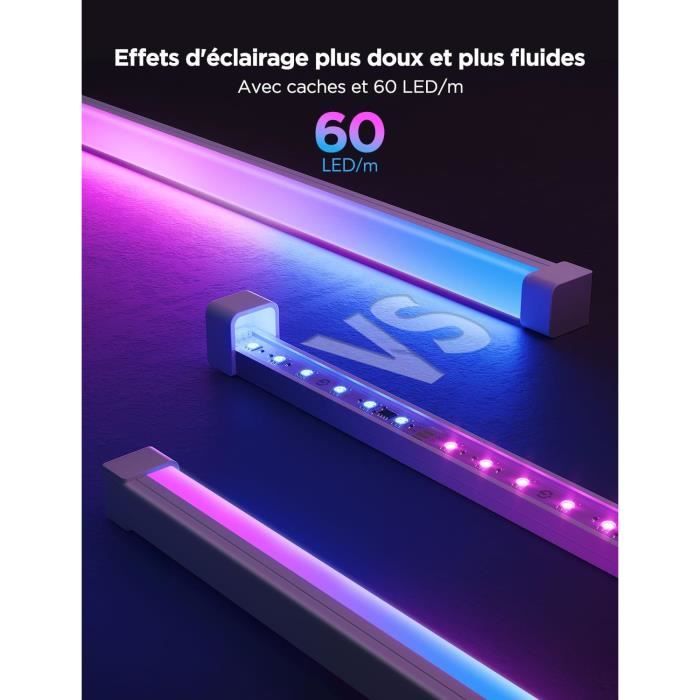 Vous pouvez utiliser l'application Govee Home pour allumer / éteindre facilement les bandes lumineuses LED, définir les couleurs et régler la luminosité sans quitter votre lit. Puce IC intelligente : La bande LED Govee RGBIC contrôle le mode LED indépendamment les uns des autres et affiche plusieurs couleurs simultanément dans une ligne Décorez votre pièce avec toutes sortes de thèmes avec 16 millions de couleurs et 64 modes de scène prédéfinis sur l'application La fonction intelligente de sélection des couleurs peut reconnaître intelligemment les couleurs des images. Plusieurs Options de Scènes: Govee Band LED 5m RGBIC offre 16 millions de couleurs, 64 modes scène et un éclairage éclatant. Choisissez parmi 16 millions de couleurs et de styles différents pour réinventer facilement la décoration de votre chambre, de votre cuisine et de votre salon. Govee Ruban LED 5m, Bande LED RGB WiFi, Éclairage Multicolore avec App Contrôle et Télécommande, Bande Lumineuse Fonctionne avec Alexa et Google Home, Musique Sync, Décor pour Chambre Maison Cuisine | Votre Avec la fonction de réglage de la minuterie, vous pouvez activer / désactiver automatiquement la bande lumineuse à un moment donné. Coloriez votre vie avec des couleurs variées. Partagez et enregistrez les effets DIY créés par les utilisateurs et testez nos designs générés par l'IA pour la bande LED RGBIC Govee. L'intégration de vos lumières LED dans votre emploi du temps quotidien est plus facile que jamais. Govee - Ruban connecté LED RGBICW PRO Wi-Fi 5m MATTER - extra résistant Contrôlez les lumières ruban dreamcouleur LED Bluetooth Govee individuellement ou créez différents groupes pour contrôler les lumières dans le groupe. Ruban Led 5M, Bande Led Rgbic Lumineuse Flexible Multicolore Contrôlé...