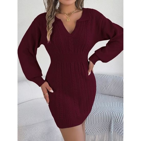 KBOPLEMQ Robe En Tricot Pour Femme - Col Rond - Manches Longues - Pull - Robe Longue - Pour L'automne - Robe D'hiver élégante Et Extensible, Noir , M