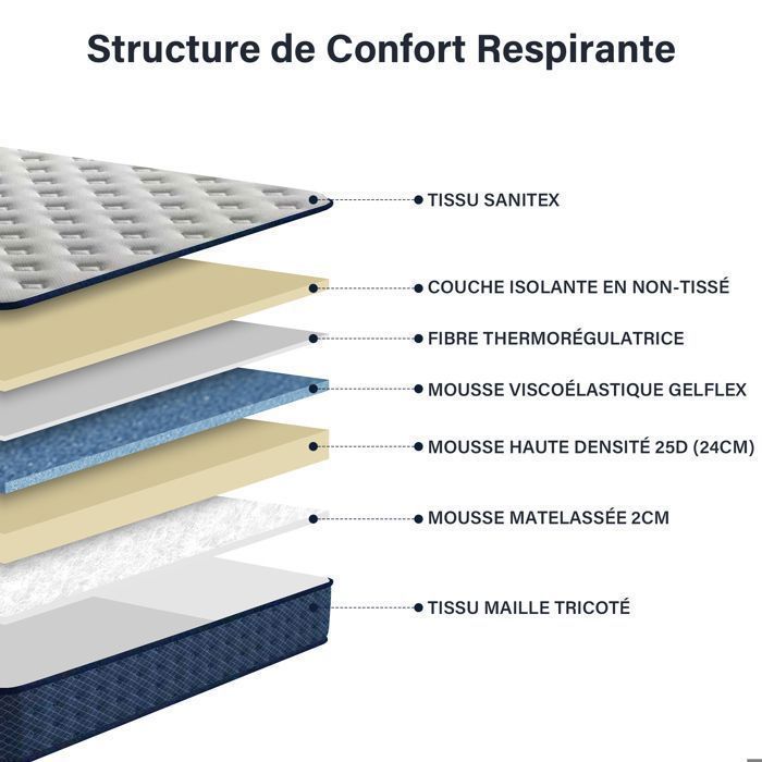 Matelas Mousse Mémoire De Forme 160 X 200 DEWINNER Matelas 160 X 200 Cm- Matelas Ergonomique Housse Amovible Lavable Conseils pratiques : Après le déballage, le matelas doit être laissé reposer environ 24 heures pour se dilater complètement et atteindre sa taille maximale (18 cm de hauteur). Profitez d'un sommeil divin comme jamais auparavant ; le matelas est composé de mousse à mémoire de forme de haute qualité pour une expérience de sommeil parfaite Améliore la qualité du sommeil : les matelas à ressorts ensachés Dewinner sont équipés de ressorts ensachés ; chaque ressort fonctionne de manière indépendante pour isoler efficacement les interférences du mouvement et réduire le bruit lorsque vous tournez tout en offrant un soutien scientifique Housse de lit amovible : la housse de lit est fabriquée en tissu tricoté doux pour la peau, plus agréable au toucher, facile à entretenir et respirant, permettant au matelas de « respirer », de dissiper la chaleur et d'absorber l'humidité. Cela garantit un confort maximal et un soutien optimal. DUANDUAN Matelas 160 x 200 cm, hauteur 25 cm, degré de dureté H3 La disposition symétrique à 7 zones permet une utilisation bilatérale. Niveau de fermeté H3 Convient à différentes positions de sommeil, offre un soutien équilibré, bords renforcés pour éviter l'affaissement et prolonger la durabilité. Noyaux ensachés à 7 zones S'adapte parfaitement à la forme de votre corps, réduit de manière ergonomique la pression sur les épaules, les hanches et la colonne vertébrale. Les bords renforcés empêchent l'affaissement et prolongent la durabilité. Niveau de fermeté H3 : convient aux personnes qui ont besoin d'un soutien équilibré pour différentes positions de sommeil. Le matelas a été testé pour les polluants et les substances nocives (test de polluants catégorie 1 (norme nourrisson)), peut être utilisé par les personnes allergiques et les bébés, offre un confort élevé et répond aux normes les plus élevées de santé écologique. Sécurité maximale pour le client : les matelas à ressorts ensachés fabriqués en Europe sont certifiés selon la norme OEKO-TEX 100 (18., HBY. (Lavable en machine à une température d'eau inférieure à 40°).