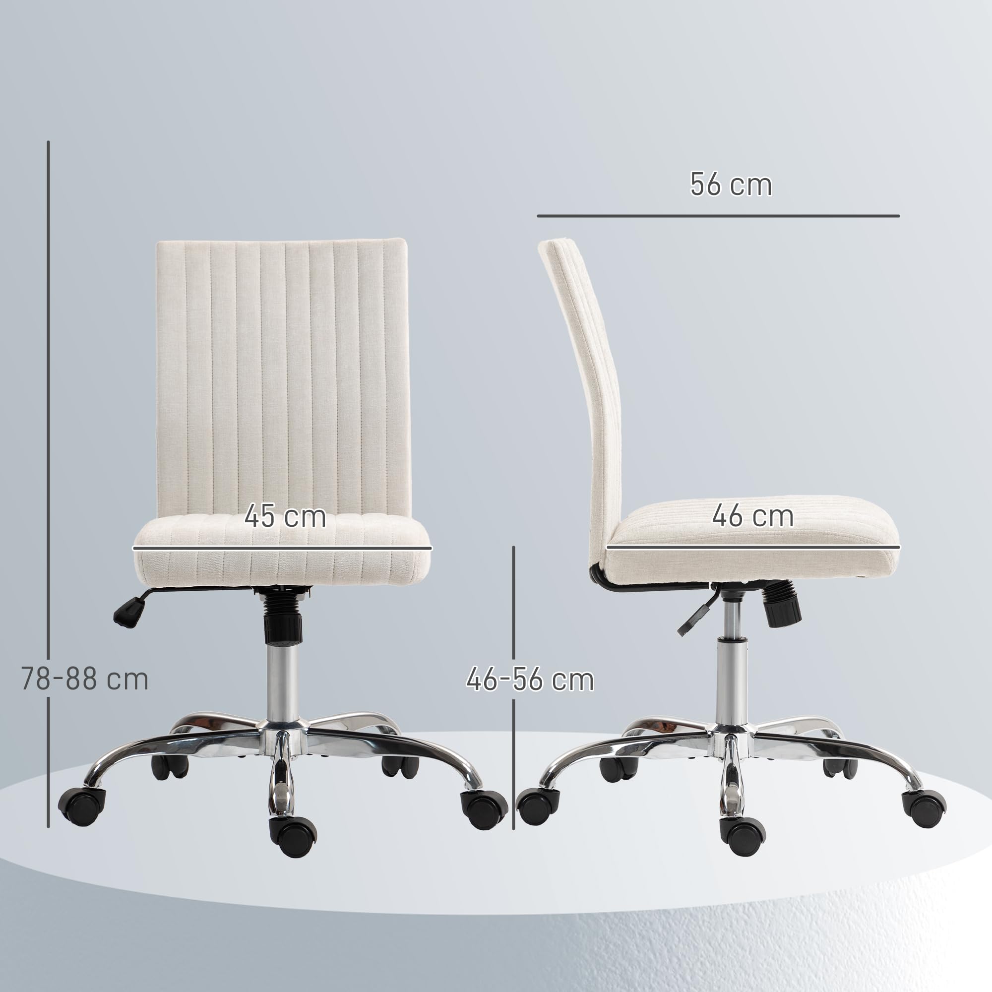 La hauteur de l'assise réglable convient à des utilisateurs de différentes tailles pour une meilleure posture Ce magnifique fauteuil de bureau avec repose-pied pliable est à la fois confortable et ergonomique. Vous pouvez ajuster son dossier selon le confort souhaité Package includes: 1 x Chaise de Bureau 1 x Manuel MOBILITÉ À ROTATION LISSE : Portée par une base en métal croisé robuste, capable de supporter jusqu'à 120 kg, ce fauteuil de bureau pivotant à 360° assure une maniabilité sans effort, permettant un accès aisé à votre environnement de travail. ASSISE RESPIRANTE ET DOUCE : Garnie de rembourrage mousse de haute densité, cette chaise de bureau confortable assure un soutien et un confort durables. Le cadre en acier solide et les roues en polyuréthane assurent une durabilité durable , Montage nécessaire CHAISE DE BUREAU ERGONOMIQUE : Conçue pour le confort optimal, notre chaise de bureau sans bras présente un dossier arrondi idéal pour s'asseoir en tailleur, diminuant ainsi la fatigue et améliorant votre posture lors de sessions prolongées. Apportez style et confort à votre bureau avec la chaise HOMCOM revêtue en similicuir. Sa coque en bois courbé finition noyer et son assise rembourrée pivotante noire offrent élégance et confort tout au long de la journée - idéale pour des espaces de travail modernes et fonctionnels Passez de longues heures au bureau sans inconfort avec la chaise de bureau HOMCOM, dotée d'un tissu respirant effet lin et d'un design ergonomique qui soutient la colonne et améliore la posture. Fauteuil de bureau - HOMCOM - sans accoudoirs - hauteur réglable - cuir Chaise Bureau Design Moderne Tissu Lin Chaise Bureau Sans Accoudoirs, Lecture Larges Coussins, Salon Jambes Croisées, Bascule, Hauteur Fauteuil Bureau Dossier Haut Pivotant 360 Le siège de bureau au design moderne minimaliste s'harmonise avec tout espace de travail au bureau ou à la maison Le tissu aspect lin respirant vous garde au frais et à l'aise toute la journée Le dossier incurvé ergonomique soutient votre colonne vertébrale, soulage la fatigue assise La fonction de balancement doux vous aide à vous détendre et à réduire facilement le stress au travail La chaise de bureau avec une base pivotante à 360° vous permet d'atteindre des objets sans quitter votre bureau