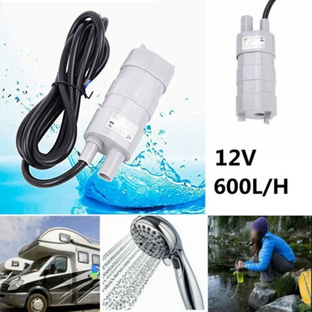 Caractéristiques : Tension nominale : 12 V CC. Mini pompe à eau à haut débit, pompe SubSN, moteur sans balais ultra silencieux, DC 12V, 10W, 400L/H, camping-car, caravane, bateau Hurhome ; Livraison gratuite Tension maximale : 18 V CC. - Cette pompe à eau est une pompe à eau submersible, la température de l'eau ne doit pas dépasser 40 degrés. ★ Remarque : cette pompe à eau ne peut pas fonctionner pendant plus de 24 heures. Pompe à Eau 12v Petite Pompe à Eau Pompe à Eau, Pompe Submersible 12 V 6,5 W 12 V Pompe Pompe Immergée 12v 10 L/min Hauteur de livraison : max., 5 m (0,5 bar) Diam., / Hauteur: max. - Cette pompe à eau ne fonctionne pas plus de 24 heures. Facile à transporter : peut être connecté à l'alimentation de la voiture et à une batterie 12 V, portable. 38 mm / 104 mm Longueur de câble: 1,5 m Dimensions : 98 x 38 mm. Cikonielf Pompe submersible pour puits profonds DC12V Pompe submersible Diamètre extérieur de sortie d'eau : 12 mm Diamètre intérieur de sortie d'eau : 9,7 mm Remarques : - Peut être connecté à l'alimentation de la voiture et à la batterie 12 V, portable. Utilisation : peut être utilisée comme pompe de rechange pour les toilettes Thetford C200, C200CW, C2 ou C400 et d'autres utilisations. 2. À propos du produit