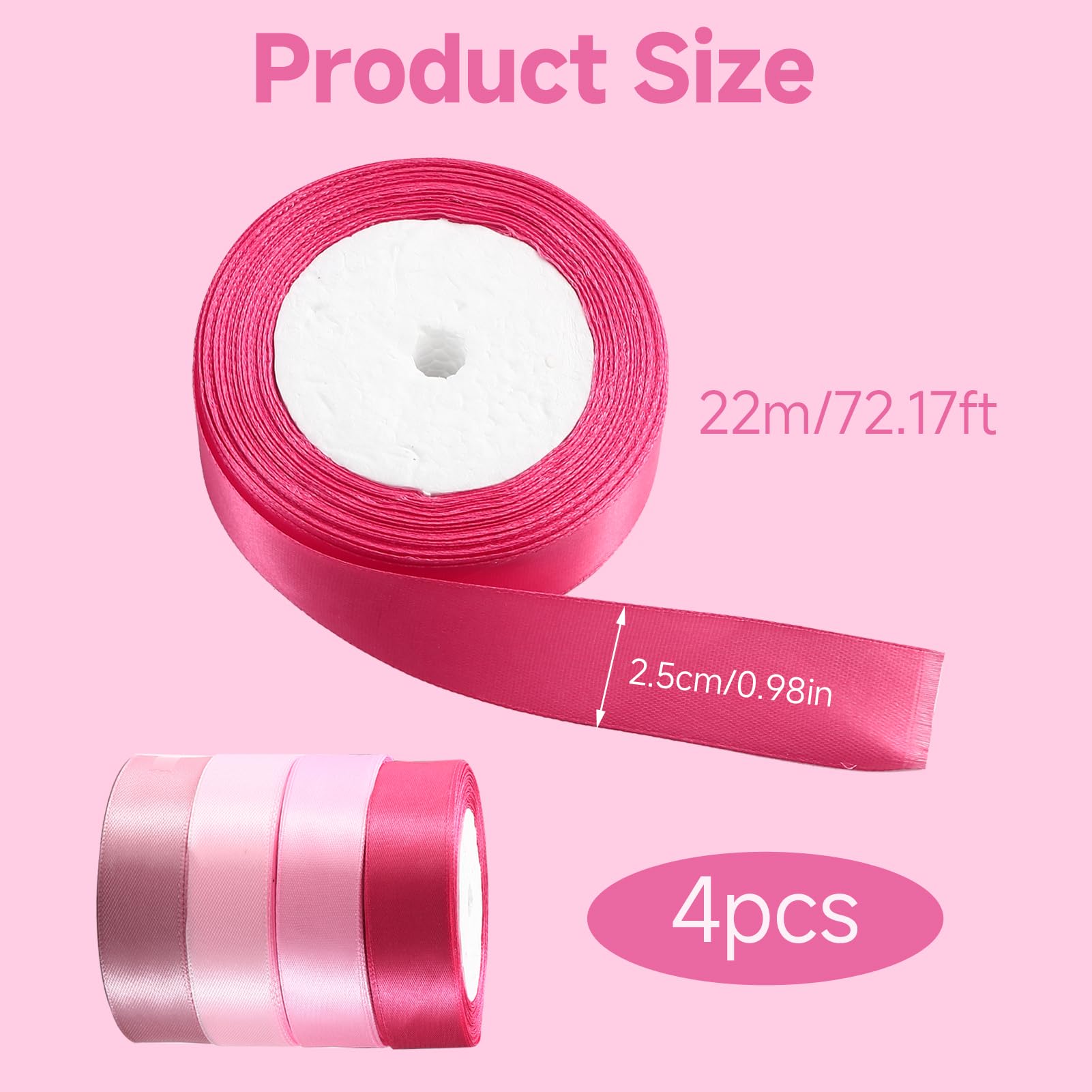 3 Rouleaux De Ruban Rose, 2.5cmx22m Ruban Satin Rose Pour Emballage