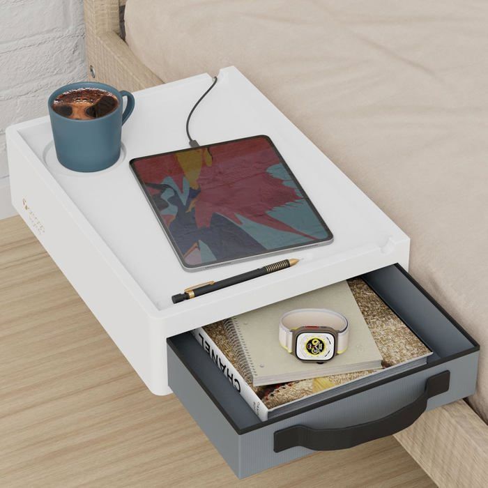 Caractéristiques du produit : Matériau : ABS. Sauveur d'espace pour les petites pièces]Notre table de chevet suspendue est spécialement conçue pour les petits espaces (32×23,3×5,3 cm). Fixée au bord du lit sans installation, elle ne prend aucun place au sol Elle peut contenir des produits électroniques, des livres, des réveils, des serviettes en papier, etc. Convient aux bords de lit de 0 à 3,1 cm de large. Design nordique simple, s'adapte facilement à tous les styles de décoration, la solution de rangement idéale pour les petits espaces Table De Nuit Suspendue Table De Chevet Suspendue En Bambou - Cadre De Lit à Clipser Avec Rangement Lit Superposé Petit Espace Design rainuré de câble de charge : des deux côtés de la table de chevet pour lit se trouvent des rainures de câble de charge spécialement conçues, parfaites pour le chargement de téléphone portable/tablette/liseuse. L'optimiseur d'espace pour les dortoirs d'étudiants et les chambres d'appartement Utilisation polyvalente : non seulement comme étagère de lit à suspendre, mais aussi pour fauteuil, balcon, baignoire et tous les objets latéraux. Les câbles restent bien en place et ne tombent pas, se recharge en toute sécurité la nuit, ne cherchez plus jamais les prises dans l'obscurité Table de chevet à LED COSMOS Laqué blanc brillant 150cm Particulièrement populaire auprès des citadins, un must pour les étudiants, une décoration de chambre élégante, une table de chevet pour chambre d'adolescent ou une table d'appoint pour les enfants. Table de chevet murale en bois massif - CH18044