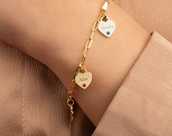 Créez un cadeau unique avec ce bracelet infini personnalisable, comportant jusqu’à quatre prénoms gravés et des pierres de naissance étincelantes dans un délicat design en argent – un souvenir plein de sens pour une maman, des amis ou quelqu’un de spécial Mesurant environ 18 + 5 cm (7,09 + 1,97 pouces), la chaîne ajustable accentue la grâce féminine. Bracelet Ado Fille Kaululu Bracelet Mère Fille Bracelet Enfant Fille Bracelet Coeur Infini Bracelet Maman Amitié Cadeau Pour Maman Cadeau Mere Fille Amitié Retour à L'école Bijoux Femmes Fille Bracelet Perle 💟 Points forts du bracelet personnalisé pour femme : cette pièce raffinée, spécialement conçue pour les mamans et les grands-mères, allie sentiment sincère et goût raffiné. 💟 Fabriqué avec soin : notre usine utilise des techniques de gravure méticuleuses, utilisant la technologie laser pour garantir un lettrage net et durable. De la production et la gravure à la main des noms et des pierres de naissance à la pièce finale, chaque étape reflète notre engagement envers la qualité et le confort. Pierre De Naissance Et Fleur De Mai Personalized Heart Birthstone Name Necklace | Custom Pendant Son design fluide et souple assure un confort optimal et épouse parfaitement le poignet. Le bracelet de la mère devient un précieux héritage transmis de génération en génération, témoignant de chaque moment précieux passé en famille. Le pendentif en forme de cœur peut être gravé de 1 à 5 prénoms et associé à des pierres de naissance correspondantes, conférant à chaque bracelet une signification unique et personnelle.