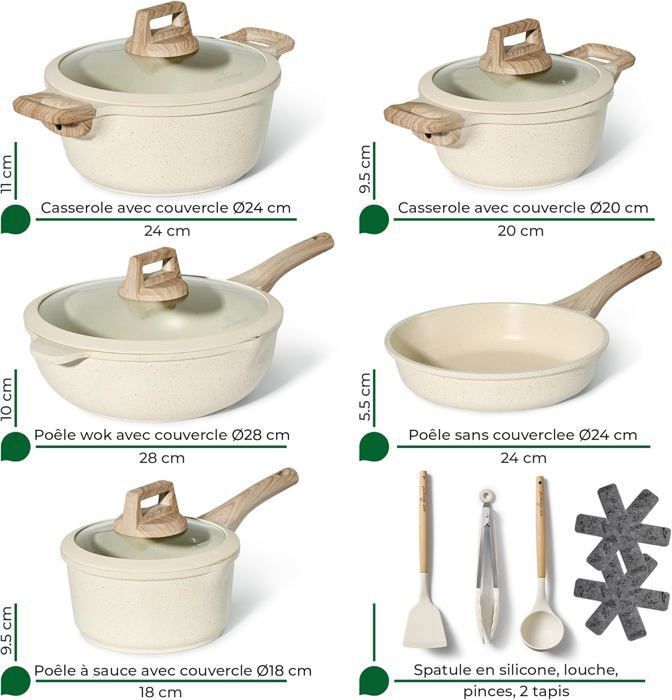 Résistants aux rayures. L'ensemble de casseroles Just Perfecto est parfait pour le camping et le camping-car. Tous feux dont induction l'ensemble de casseroles et po les adopte une grande base aimant e et ofe une plus grande surface de chauffage, ce qui permet de r partir la chaleur rapidement et uniform ment Que vous mijotiez une sauce, prépariez un œuf ou réchauffiez un plat, nos ustensiles garantissent une cuisson homogène et sans accrochage. Nettoyage facile à la main La surface céramique résistante aux rayures se nettoie simplement avec une éponge douce et un peu d’eau savonneuse. Compatible tous types de feux, y compris induction Grâce à leur base en aluminium moulé, les ustensiles chauffent rapidement et de façon uniforme sur gaz, vitrocéramique, électrique et induction. 100 % sain et sans substances toxiques Conçu avec un revêtement en céramique sans PTFE, PFOA, plomb ni cadmium. Certifié SGS pour garantir une cuisson fiable et respectueuse de votre santé. Casserole Inox 18cm Modèle Initial Cas18tfi - Casserole - Poêle - Wok BUT ✔️ Les avantages de notre set de cuisson : - Cuisine plus légère : Grâce au revêtement céramique antiadhésif, vous utilisez moins de matières grasses sans sacrifier la saveur. Just Perfecto Lot Casseroles et Poêles 11 Pièces - Poêle à Frire 20cm Sans PFOA PTFE Just Perfecto Lot De Poêle 20cm + Casserole 18cm Avec Couvercle Couvercle Poele En cas de problème ou de défaut, notre service client reste à votre disposition pour une solution rapide. - Sécurité alimentaire assurée : Sans PFOA, plomb ni cadmium, testés et certifiés conformes aux normes internationales. - Durabilité & performance : Fabriqués en aluminium moulé sous pression, ils résistent à la déformation et diffusent la chaleur de manière optimale. - Confort d’utilisation : Poignées ergonomiques qui restent froides pendant la cuisson pour une prise en main sûre. - Entretien facile : Un simple rinçage suffit.
