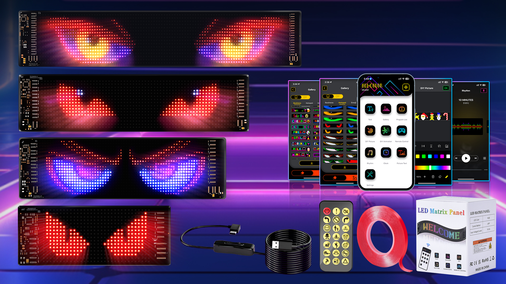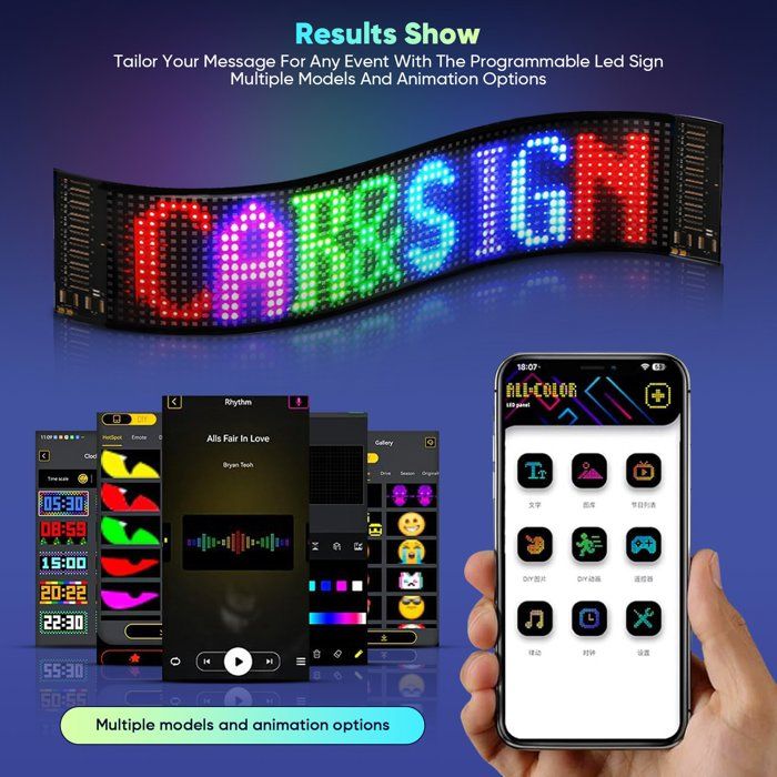 Un câble USB de 4 m est inclus et permet un placement flexible dans la voiture, au bureau ou à la maison. Collez-le facilement sur n'importe quelle vitre de voiture. Lot de 2 Yeux LED pour Voiture 37 x 9 cm, Tableau d'Affichage Flexible Programmable avec Contrôle Bluetooth, Lumières Dynamiques USB pour Fenêtre de Police Il fonctionne avec les chargeurs de voiture, les banques d'alimentation et d'autres appareils USB. Indice d'étanchéité IP65, cette lumière colorée et programmable diable est conçue pour résister à diverses conditions météorologiques, assurant durabilité et longévité pour toutes vos aventures de conduite Bibliothèque graphique dynamique œil de démon : laissez libre cours à votre créativité avec notre application mobile compatible avec les systèmes iOS et Android. Grands Yeux de Diable Dynamiques pour Camions et Voitures, Grand Écran LED Dynamiques pour Fenêtre de Voiture, a Monter Soi-même, Programmables avec Télécommande, Écran LED Flexible(2pcs 16.6x60CM Effet ImperméAble:Ce yeux du diable led pour camion voiture utilise un procédé étanche, l'ajout d'une couche de résine colloïdale sur la surface pour mieux protéger les perles internes de la lampe, afin d'obtenir l'effet d'étanchéité IP65, faible consommation d'énergie, longue durée de vie, vous n'aurez pas à vous soucier de la surchauffe, et n'aura pas le risque d'un simple dommage ! Convient pour toutes les occasions : ajoutez une atmosphère festive à Noël, Halloween, Pâques et autres fêtes. éclairage Voiture Personnalisé Lot De 2 Lumières LED Flexibles Pour Voiture Et Camion - Panneau D'Affichage Programmable - Enseigne Lumineuse Personnalisée Avec Application Bluetooth Panneau Led Voiture Ruban adhésif double face pour une longue durée de vie. Contrôle par smartphone : yeux du diable led pour camion voiture avec Smart App L'installation de l'APP est très pratique et facile à utiliser, il suffit d'activer la fonction Bluetooth de votre téléphone portable pour connecter le panneau LED à l'application. Design USB Plug and Play : notre écran LED flexible est fabriqué à partir de matériaux robustes, résistants à l'eau et à la poussière et est facile à installer.