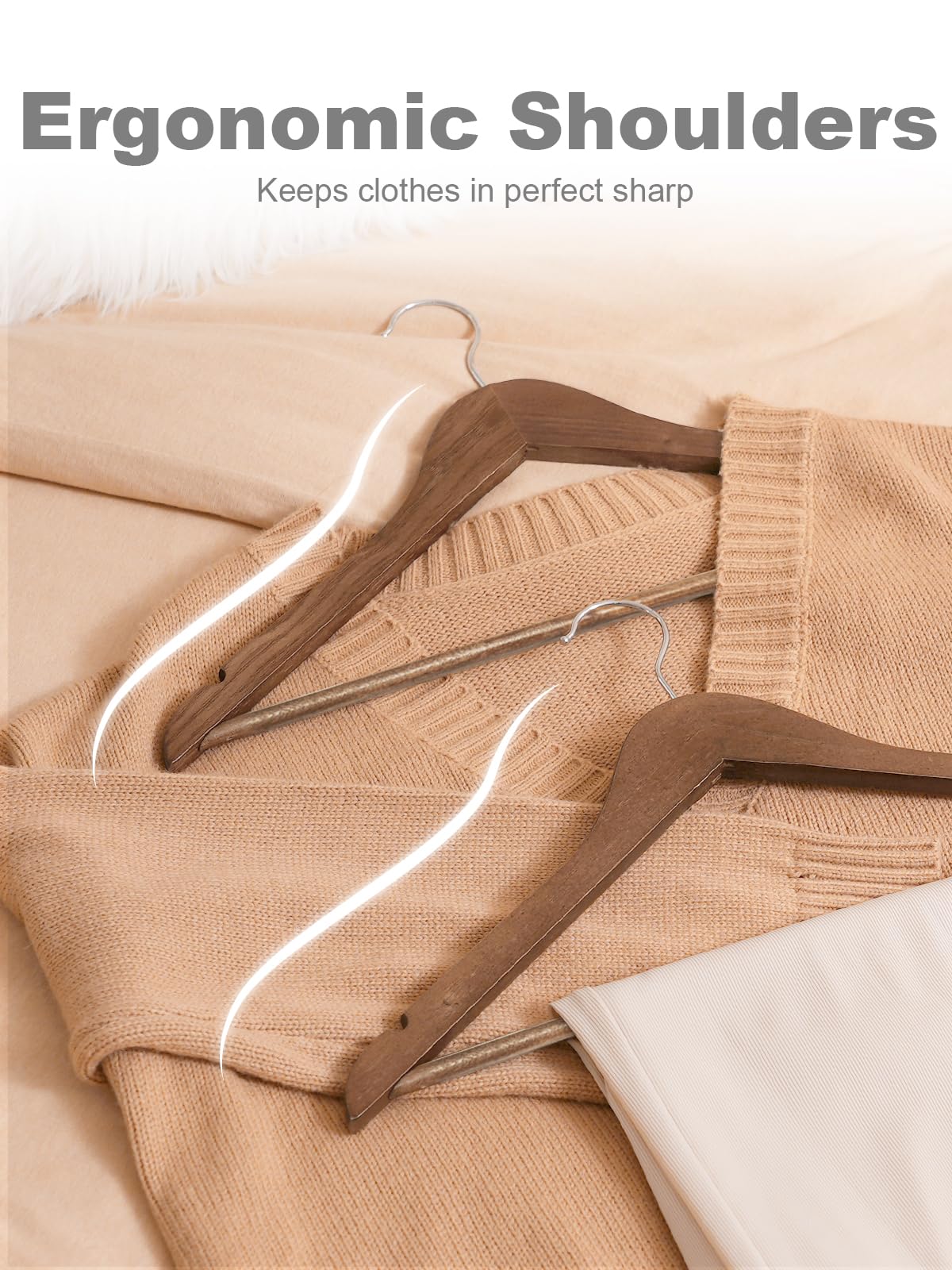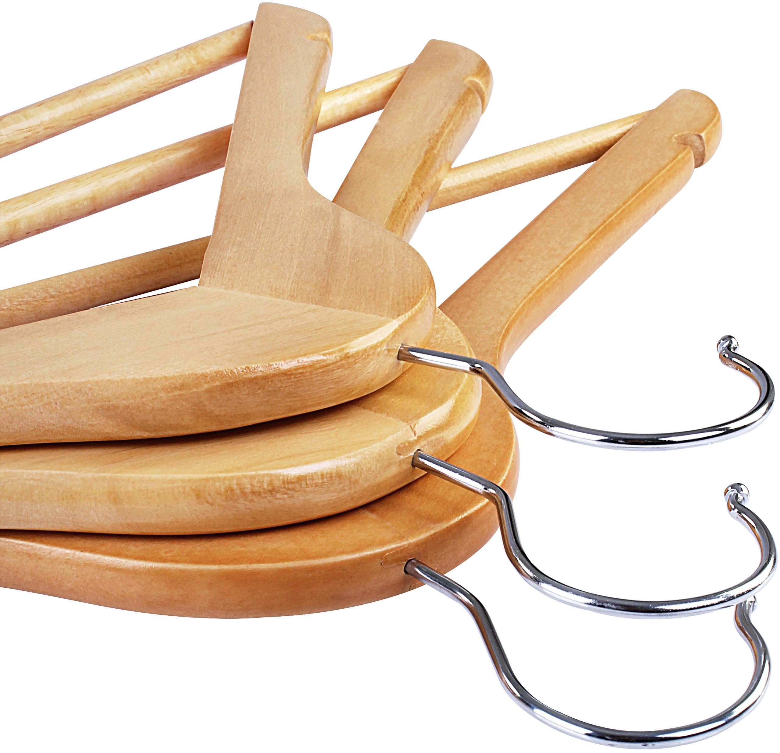 Lot De 50 Cintres En Bois Massif Avec Encoches Et Barre Crochet Rotatif Antiglisse Longueur 445 Cm 56154351 Cintres En Bois HOUSE DAY Lot De 20 Noir Pour Vêtements D'adultes, Cintres à Costumes Avec Pont Et Encoches, Crochet Rotatif à 360 °, Or Rose Cintre En Bois Crochet rotatif à 360° : équipé d'un crochet en acier inoxydable lisse et rotatif à 360°, il est facile à accrocher et permet de voir rapidement tous les cintres de votre garde-robe pour plus de confort au quotidien. Cintres en bois massif de qualité supérieure : ces cintres sont fabriqués en bois massif de qualité supérieure et sont polis et peints pour obtenir une surface sans éclats qui met en valeur le grain de bois exquis et offre une solution de rangement élégante et durable. Cette amélioration ergonomique préserve la forme du col et la chute des costumes, manteaux et chemises, tout en gardant les vêtements sur mesure dans leur forme d'origine. Épaules Extra-Larges pour un Soutien Optimal: Ces cintres en bois présentent des épaules larges de 6 cm, conçues pour épouser la forme des vêtements sans déformation. Idéal pour les costumes, manteaux et chemises, ils préservent la coupe originale même après un stockage prolongé Surface antidérapante : équipé d'un manchon en caoutchouc rainuré et antidérapant sur la barre du pantalon. Offre soldée chez Alpha55 Lot de 6 cintres en bois Il maintient le pantalon bien en place, l'empêche de glisser et évite les plis, de sorte que le pantalon reste toujours bien rangé. Il dispose d'épaules extra larges incurvées vers l'intérieur qui répartissent uniformément le poids des vêtements.