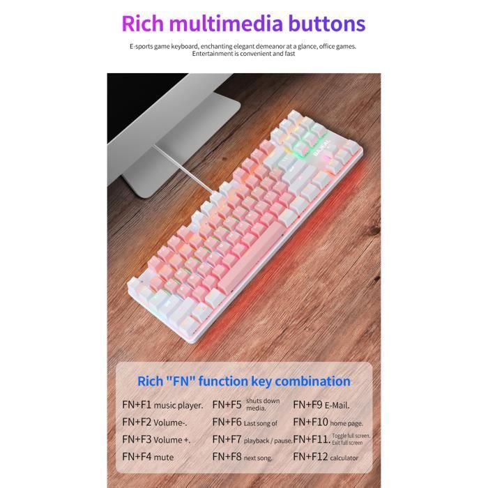 Étant donné qu'il est équipé du chapeau rond vintage, le clavier est simple et généreux. Spécifications: Type d'élément: Clavier Matériel: ABS Couleur blanche Liste des packages: 1 x clavier 1 x manuel d'instructions Bouton de remplacement 1Pack Grâce à une conception conviviale, un tel clavier est ajouté à une série de touches de fonction de raccourci, faciles à utiliser. Clavier de jeu - HURRISE - HJK920 - Mécanique - Rétroéclairé Les commutateurs mécaniques personnalisés répondent très rapidement, et un tel clavier mécanique, plug and play, aucun pilote requis. Images de Souris Clavier Jeu – Téléchargement gratuit sur Freepik Clavier Ordinateur Rétro Design Clavier Filaire D'ordinateur, Clavier De Machine à écrire Rond Rétro USB Plug Play, Clavier Filaire Pleine Grandeur Pour Ordinateur Portable Et PC De Bureau Clavier Rétroéclairé LED Filaire USB Grâce à son design convivial, un tel clavier est ajouté une série de touches de fonction de raccourci, facile à utiliser. Très , ce clavier de jeu peut être...