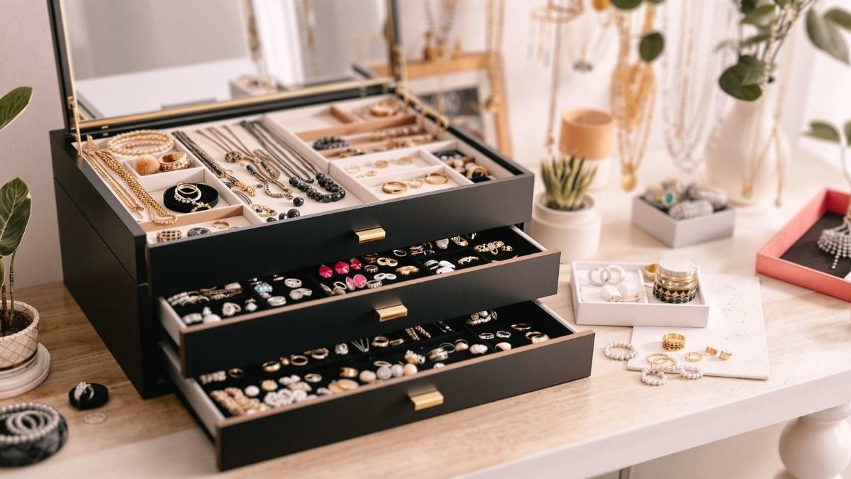 Organisation Optimale en Voyage: Gardez vos colliers et bracelets parfaitement démêlés et vos boucles d'oreilles sécurisées grâce à cette pochette pratique, l'accessoire indispensable pour tous vos déplacements et vacances Organisation Optimale en Voyage: Gardez vos colliers et bracelets parfaitement démêlés et vos boucles d'oreilles sécurisées grâce à cette pochette pratique, l'accessoire indispensable pour tous vos déplacements et vacances Conception Intelligente à Plusieurs Zones: Dispose de zones dédiées avec des sangles pour colliers, un panneau pour bagues et boucles d'oreilles, et une poche zippée pour les articles plus volumineux, assurant que chaque bijou a sa place Doux Velours Protecteur: Confectionné en velours rose poudré de haute qualité, ce rouleau de rangement offre une sensation luxueuse tout en protégeant vos précieux bijoux des rayures et des chocs lors de vos voyages Compact et Léger: Son design en rouleau est incroyablement compact une fois fermé, se glissant facilement dans votre sac à main ou votre bagage à main sans prendre de place, ce qui en fait un organisateur de voyage idéal Une Idée Cadeau Élégante: Avec son style raffiné et son utilité indéniable, cette trousse à bijoux est le cadeau parfait pour une femme, une mère, une amie ou une fille pour un anniversaire, la fête des Mères ou toute autre occasion spéciale Compact et Léger: Son design en rouleau est incroyablement compact une fois fermé, se glissant facilement dans votre sac à main ou votre bagage à main sans prendre de place, ce qui en fait un organisateur de voyage idéal Teamoy Trousse Rouleau à Bijoux de Voyage, Organisateur/Rangement Multifonctionnel pour Bijoux, avec Plusieurs Compartiments, en Velours, Pochette Vide, Noir Une Idée Cadeau Élégante: Avec son style raffiné et son utilité indéniable, cette trousse à bijoux est le cadeau parfait pour une femme, une mère, une amie ou une fille pour un anniversaire, la fête des Mères ou toute autre occasion spéciale La pochette bijoux voyage est l'accessoire parfait pour les globetrotteurs soucieux de protéger leurs trésors tout en restant organisés. Que vous partiez pour un court séjour ou une longue escapade, découvrir le meilleur moyen de ranger vos colliers, bagues et autres accessoires devient essentiel Accessoire Voyage Femme Compact Casiwaft Boîte à Bijoux De Voyage En Velours, Petit Coffret à Bijoux Pour Filles Femmes Avec Fermetures à Glissière, Organisateur De Bijoux Pour Bagues, Boucles D'oreilles, Colliers, Rose Rouleau Velours Bijoux Jinlaili Pochette Rouleaux à Bijoux, Pochette Bijoux Voyage en Cuir...
