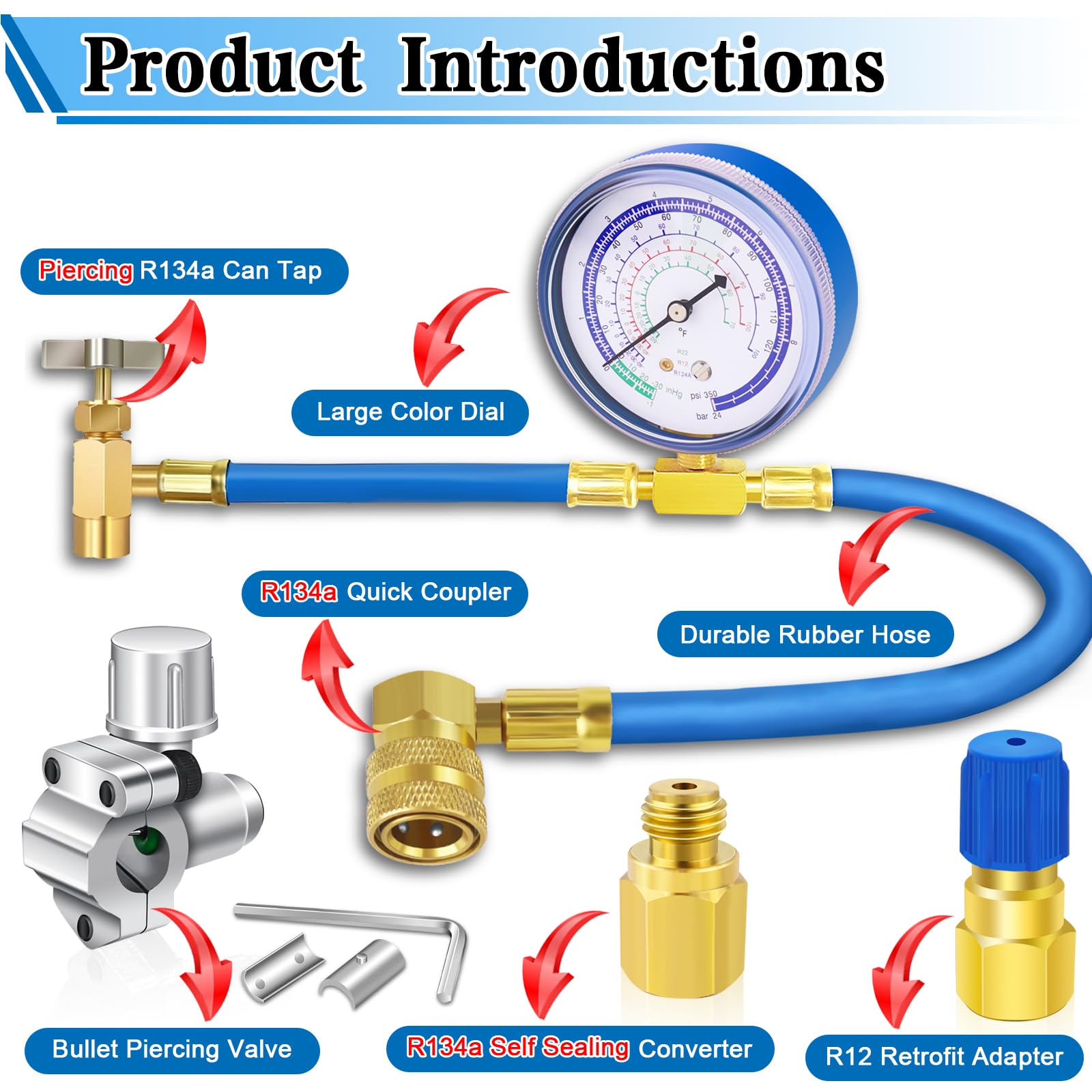 Kit Recharge Ac Voiture TUYAU DE CHARGE R134A Pour Réfrigérateurs Domestiques Avec Boîte Et Outil Diy Climatisation Il permet même aux débutants de gérer en toute confiance les niveaux de réfrigérant de leur véhicule, garantissant que le système de climatisation de votre voiture maintient une puissance de refroidissement optimale sans procédures complexes. Ce tuyau de charge de réfrigérant R134A est livré avec un manomètre pour une visualisation aisée lors de son utilisation. Il dispose d'une construction solide avec une endurance maximale. et le fil 1/2 est spécialement conçu pour l'Amérique et l'Europe Tuyau De Charge De Réfrgérant De Voture AC R134A - Cdscount Brcolage La jauge comprend une double lecture claire, montrant des mesures dans les deux psi (livres par pouce carré) pour la pression d'alimentation et le kg / cm2 pour les niveaux de charge, garantissant que votre système de refroidissement fonctionne régulièrement à son meilleur. [Connectivité et fonction pratique] Le tuyau de mesure du réfrigérant se connecte parfaitement au port de chargement CA de votre véhicule, un ajustement sécurisé pendant l'entretien. Luejnbogty Kit de recharge ACR134A pour réfrigérateur - Tuyau de charge CA avec jauge - Piercing en métal - Robinet et adaptateur auto-scellant - Bleu [Installation et fonctionnement faciles] Avec conception conviviale et intuitive, ce tuyau de jauge garantit une installation et un fonctionnement simples. 1., Ce tuyau de charge de réfrigérant R134A est livré avec une jauge pour une visualisation facile pendant l'utilisation., 2., Utilisé pour ajouter du réfrigérant R134AR12R22 aux véhicules avec d'excellentes performances., 3., Facile à utiliser, il est équipé jauge et facile à visualiser lors de son utilisation., 4., Le cercle extérieur est un kilogramme rechargeable en KG/CM2., Le cercle du milieu est la pression d'alimentation, l'unité est le PSI., 5., Longue durée de vie, performances stables et installation pratique. Utilisé pour ajouter du réfrigérant R134AR12R22 aux véhicules avec d'excellentes performances. Spécification : État : Neuf Type d'article : Tuyau de jauge de réfrigérant Couleur : montrée comme image Matériau : Cuivre + Caoutchouc Application : UniversalPort Spécifications : Port SAE 1/4 Manomètre KG : -76-17,5 Kg/cm2 Pression de recherche : -30- 250PSI Liste des colis : 1 x tuyau de jauge de réfrigérant 1 x ouvre-bouteille R134A 1 x connecteur autobloquant Le cercle extérieur est un kilogramme rechargeable en KG/CM2., Le cercle du milieu est la pression d'alimentation, l'unité est en PSI. La construction solide garantit qu'elle peut gérer les pressions de la recharge des systèmes CA AC, fournissant un outil fiable pour les techniciens automobiles amateurs et professionnels. [Conception durable et fiable] Fabriqué pour une durée de vie et de stabilité à longue durée de service, ce tuyau de charge de réfrigérant résiste à une utilisation régulière sans compromettre les performances. Spécification: Caractéristiques : Ce tuyau de charge de réfrigérant R134A est livré avec une jauge pour une visualisation facile pendant l'utilisation.
