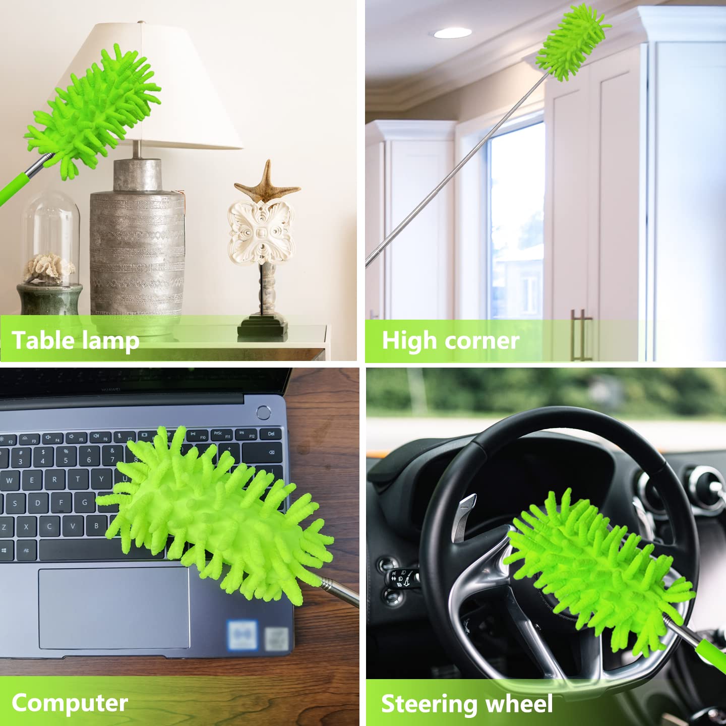 Plume Télescopique en Microfibre, extra Longue à Extensible Plumeau Autruche Avec Manche Extensible, 254 Cm, Télescopique Pour Plumeau En Microfibre Plumeau rétractable en microfibre avec manche télescopique, brosse lavable à grande portée pour voiture, fenêtre, meubles et bureau (vert, taille unique Plumeau Extensible Avec Plumeau Télescopique En Microfibre Avec Tête...