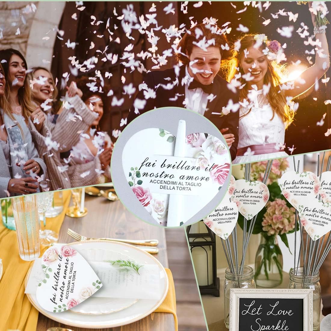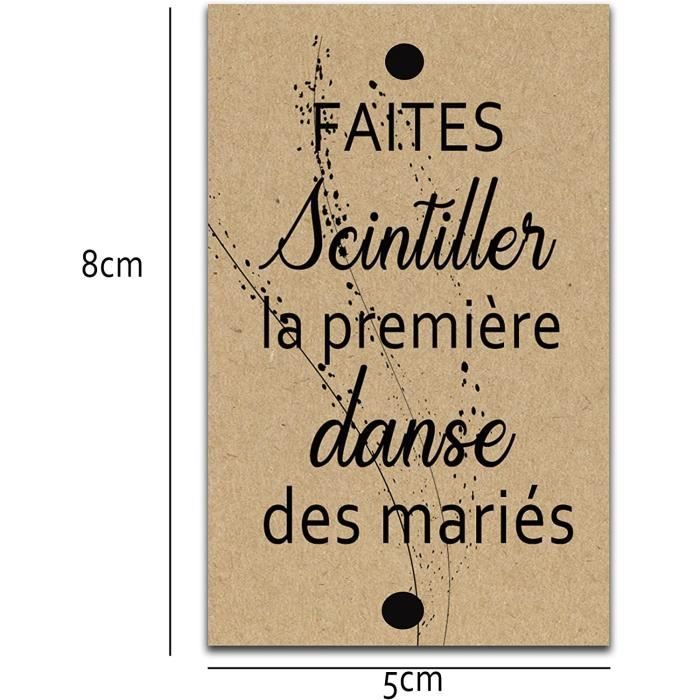 Quantité suffisante : lot de 100 pièces, pour répondre aux besoins des mariages, fêtes et autres événements réunissant de nombreuses personnes, afin que les invités puissent créer ensemble des moments étincelants sans se soucier d'un éventuel manque de quantité. Design romantique : carte en forme de cœur avec motif floral aquarelle et inscription « FAI Brillare QUESTO GIORNO SPECIALE » (Fais briller ce jour spécial), pour ajouter une touche romantique aux occasions spéciales telles que les mariages et rehausser le caractère solennel de la cérémonie. pour créer une ambiance de rêve. Etiquette mariage avec dorure à chaud "Faites scintiller l'entrée des Expérience interactive agréable : allumez les bâtons de feu d'artifice, les invités participent ensemble, ce qui renforce l'interaction et le caractère mémorable de l'événement, laissant un souvenir inoubliable de cette journée spéciale. Personnalisez vos étiquettes pour cierges magiques avec prénoms, date et décor au choix ! Idéales pour sublimer votre mariage avec une touche unique et élégante étiquettes Mariage Étiquettes Pour Les Cierges Magiques De Mariage Donna - à Partir De 0.20 étiquettes Ouverture Du Bal Romantique Description du produit Taille 5x7cm, trou-6mm. Grande taille, compatible avec la plupart des tailles de cierges magiques pour prot ger les mains des invit s Mat riel de haute qualit tiquettes cartonn es, chaque tiquette a un trou en haut ou en bas, id ale pour y placer la bougie magique, et confortable tenir Design de style l gant nos tiquettes de mariage avec motifs de belle fleur et les...