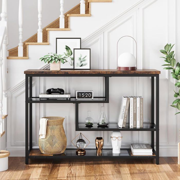 Tribesigns Table console industrielle à 4 niveaux avec base circulaire, tables d'appoint étroites en bois avec étagères ,marron. 3,3 / 5. 4 avis. Bon plan La structure décalée de l'étagère crée une dynamique visuelle et aide en même temps à garder l'ordre Table Basse Design Géométrique Table Console étroite Pour Couloir - Table Basse Rustique à 4 étages Meuble D Entree Design géométrique unique : avec son cadre rond en métal distinctif, cette table console fait une déclaration élégante. Montage rapide et facile : grâce aux instructions claires et aux pièces étiquetées, la table peut être montée sans effort. Le design convivial permet une mise en service rapide sans stress Console étroite pour couloir Console étroite pour couloir : la sélection produits Leroy Merlin de ce jeudi au meilleur prix ! Retrouvez ci-après nos 85 offres, marques, références et promotions en stock prêtes à être livrées rapidement dans nos magasins les plus proches de chez vous Table console en rotin avec 2 tiroirs et étagère ouverte, table de couloir, table basse étroite Idéal pour le salon, la chambre à coucher, le bureau ou l'entrée Les pieds réglables et antidérapants assurent un maintien sûr même sur des sols inégaux et protègent le sol des rayures Le design géométrique allie charme industriel et élégance artistique, tandis que l'aspect bois marron rustique s'harmonise parfaitement avec la structure en métal noir, un véritable accroche-regard pour chaque pièce