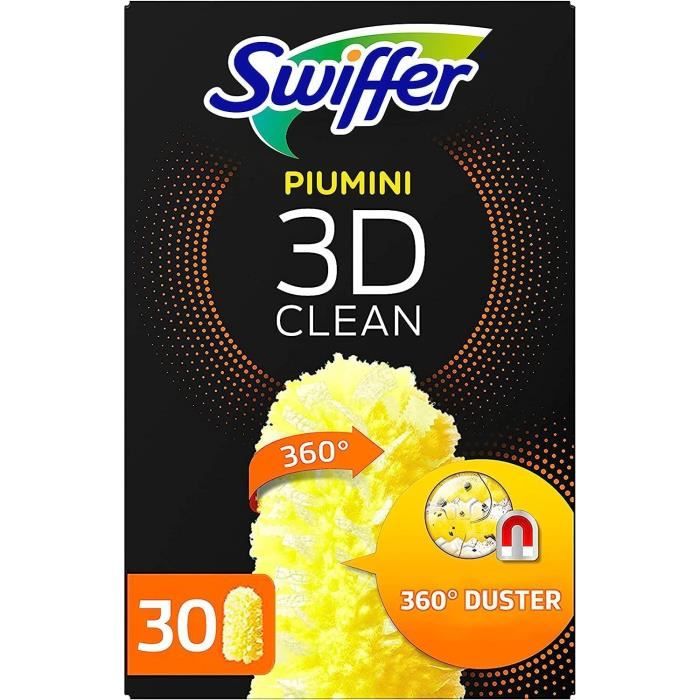 Emballage : 36 chiffons de rechange parfumés pour sols (balai vendu séparément) Efficace : le chiffon attrape-poussière Swiffer Dry capture et bloque 3 fois plus de poussière, de saleté et de poils d'animaux qu'un balai traditionnel Ils conviennent également à ceux qui souhaitent réduire la présence d'allergènes des acariens dans les surfaces domestiques. Recharge Swiffer Swiffer Chiffons Capture De Poussière, 36 Chiffons En Capture De Poussière Chiffon Description du produit Les chiffons à poussière Swiffer sont conçus pour être utilisés avec le balai électrostatique Swiffer, parfaits pour ramasser la poussière, la saleté fine et les cheveux sur toutes les surfaces dures de la maison. Conseils d'utilisation : répéter à l'intérieur les rabats des bords du chiffon Swiffer en appuyant sur les anois du balai sur les broches en caoutchouc, passer pour nettoyer le sol, après utilisation, retirer le chiffon et le jeter correctement Points difficiles à atteindre : le balai Swiffer grâce à sa tête qui tourne à 360° parvient à arriver dans les endroits les plus difficiles à atteindre comme les endroits sous le lit, le canapé ou le buffet Capture et bloque la poussière et les cheveux jusqu'à 3 fois plus qu'une couette traditionnelle. Le paquet contient 1 couette et 3 chiffons secs Swiffer Duster Doudounes Capture-poussière, 30 Doudounes 3D, Capture et Ces chiffons anti-poussière sont particulièrement indiqués dans des environnements avec des animaux domestiques, car ils aident à ramasser les poils de chien et de chat de manière pratique. Caractéristiques principales : élimine la poussière, les cheveux et les poils ; action électrostatique active ; utilisable sur toutes les surfaces ; convient pour les pièces avec des animaux domestiques ; accessoires compatibles avec le balai Swiffer Ingrédients Not Available Mode d'emploi Ne convient pas aux surfaces traitées anti-reflets (par ex., écrans plasma). Les chiffons anti-poussière sont également indiqués pour des interventions rapides entre un nettoyage en profondeur et l'autre.