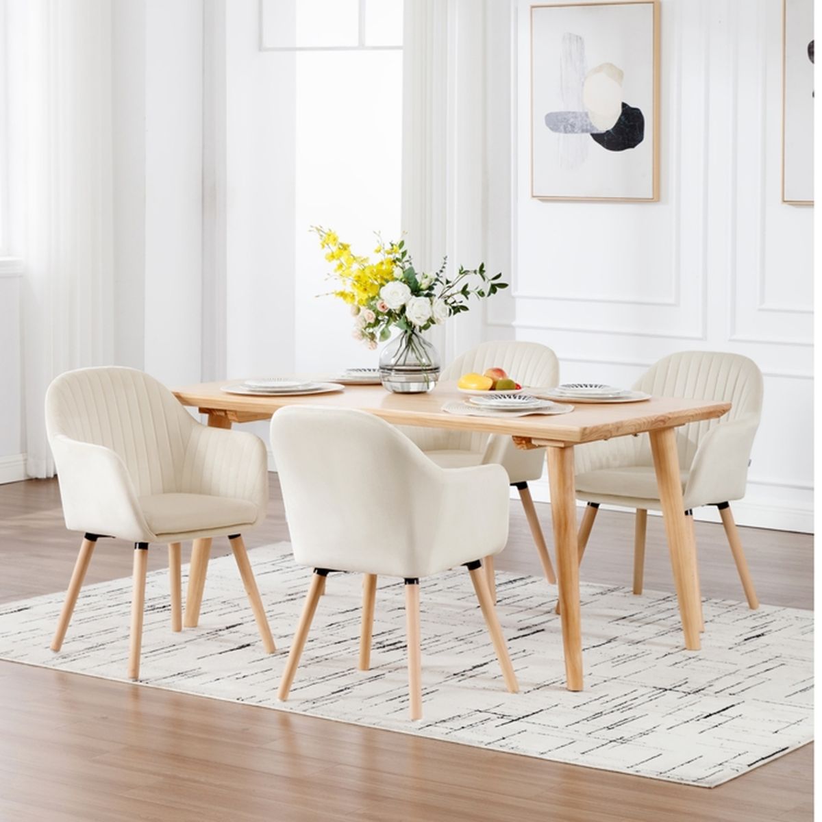 Ils sont conçus pour donner à votre salle à manger un aspect agréable et un sentiment de confort. Confortables et faciles à assembler en quelques minutes, elles conviennent parfaitement aux salons, salles à manger, chambres, bureaux, salles d'attente, fêtes, banquets ou cafés. De plus, le siège est également très résistant, vous pouvez donc en profiter pendant des années. [Capacité de Charge Robuste] Poids maximum autorisé de 120 kg, assurant une capacité de charge robuste et une utilisation sûre. Confortable et durable : l'assise rembourrée de la chaise de salle à manger Lavinia La chaise de salle à manger Lavinia est connue pour son assise confortable. Chaises Contemporaines avec Accoudoirs | Velours Jaune [Revêtement en Velours Haut de Gamme] Matériau velours de qualité supérieure offrant une sensation douce au toucher et ajoutant une touche d'élégance à votre décoration intérieure. [Dimensions Pratiques] Hauteur d'assise de 48 cm, hauteur de l'accoudoir de 62 cm, hauteur totale de 85 cm, adaptées pour une variété de tables de salle à manger. Révolutionnez votre salle à manger avec les chaises Oriana de COLENIS, un véritable concentré de design moderne et de confort ultime ! Ces chaises ne sont pas de simples assises, mais de véritables déclarations de style. Imaginées dans un **jaune ocre profond**, elles apportent une touche de caractère audacieuse à votre intérieur Chaise Accoudoir Métal Jaune Ocre Colenis® - Chaises De Salle à Manger Oriana - Beige - Lot De 4 Chaises Oriana Accoudoirs Pied Métal Style Oriana Les chaises de salle à manger O sont un excellent mélange de confort et de style. Profitez du confort tout en ajoutant une touche raffinée à votre espace. La chaise de salle à manger Lavinia est connue pour son assise confortable. Ceci est rembourré, ce qui signifie que vous pouvez vous asseoir merveilleusement doux tout en mangeant ou en travaillant à table Ces chaises ont des pieds en métal élégants et une forme élégante qui peuvent donner à votre cuisine ou salle à manger un aspect plus élégant. [Style et Confort] Chaises de salle à manger modernes COLENIS Oriana, alliant un design élégant à un confort luxueux. Chaises Colenis Modernes et Confortables Élégance et Confort Pour Votre Intérieur Les chaises Oriana sont conçues pour apporter une touche d'élégance et de confort à tout type de pièce. [Emballage Soigné] Livrées dans un emballage soigné, les chaises sont bien protégées pendant le transport pour une réception en parfait état.