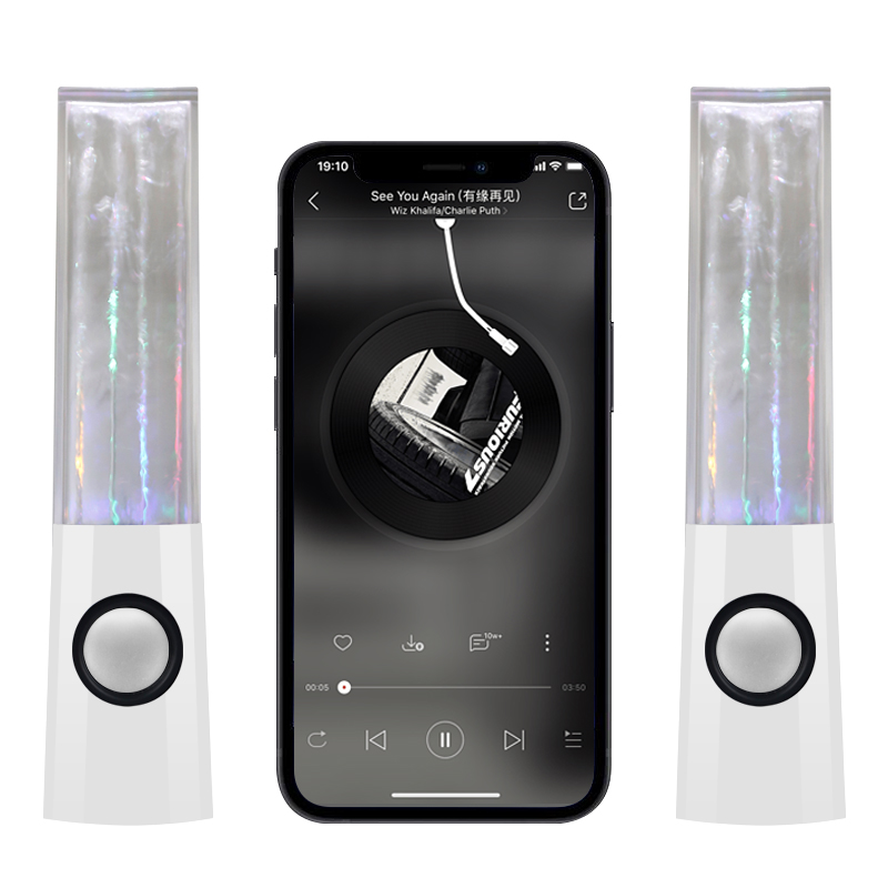 Vous pouvez connecter une variété d'appareils de lecture de musique, tels que : MP3, MP4, téléphones portables, ordinateurs, etc. Enceintes dansantes à eau BLUETOOTH Water Dancing - Noir - Sans fil - Bluetooth - TV Son Photo 2 pièces LED haut-parleur danse eau musique lumière pour PC ordinateur portable pour téléphone portable bureau haut-parleur stéréo ... Actuellement indisponible Communication : Bluetooth Type de haut-parleur : combinaison Puissance source : CA Nombre de boîtier du haut-parleur : 2 Croisement audio : deux voies., Canaux : 2 (2., 0) Support Apt-x : Oui Couleur : Matériau : ABS + PS Dimensions : 25,5 x 5,1 x 6,3 cm Contenu de l'emballage : 2 haut-parleurs 1 câble audio. Tension de fonctionnement : 5 V-4,5 V. Description de Lot de 2 haut-parleurs LED pour fontaine musicale et dansante, lumière blanche 1. Des lumières LED colorées sont intégrées à l'intérieur, et la colonne d'eau est pulvérisée de différentes couleurs lors de l'utilisation de la fontaine. 2. Après avoir connecté l'équipement audio, le haut-parleur fait vibrer la colonne d'eau colorée au rythme de la musique, ce qui est... Léger et élégant, facile à utiliser, adapté à un usage domestique et au bureau., 5., Prise d'alimentation USB standard, aucune alimentation par batterie nécessaire. Mcclellanty Puissance de sortie : 3 W x 2., Courant de fonctionnement : 280-590 mA. Haut-parleur Bluetooth Avec Effets D'eau Mcclellanty Lot De 2 Enceintes LED Dancing Water Music Source Enceinte LED Danse Eau