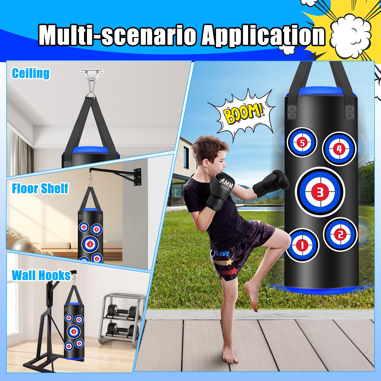 RDX X4 2ft Pliant Sac de Frappe Support Mural – RDX Sports France Punching Ball JUOIFIP Sac De Frappe Enfants 2ft, Rempli Anti Balançoire Lourd Boxe Punch Bag Avec Gants Kit Pour Muay Thaï MMA Arts Martiaux Sparring Punching Kickboxing D'entraînement, Domicile Gym Fitness Punching Ball Adulte Le sac d'éponge compressé peut être chargé dans le sac de boxe d'abord et ensuite ouvrir une petite ouverture pour le laisser s'étendre lentement et remplir tout le sac de boxe. La longueur totale de la chaîne est de 90 cm. Un cadeau parfait pour les enfants à Noël ou pour toute autre occasion. RDX X4 2ft Pliant Sac de Frappe Support Mural – RDX Sports France Que ce soit à la maison, au gymnase ou à l'extérieur, il est facile à manipuler ! Sac De Frappe Autoportant 173 Cm De 5 Couches, Sac De Boxe Lourd Avec... Installation facile : Livré avec un outil de suspension pour le montage au plafond ou peut être accroché directement à un support mural à l'aide d'une perceuse électrique. Matériau en cuir microfibre de première qualité : Le sac de boxe robuste en cuir microfibre multicouche de haute qualité est confortable au toucher et réduit le bruit, ce qui vous permet de vous entraîner dans un environnement silencieux et sans distraction.