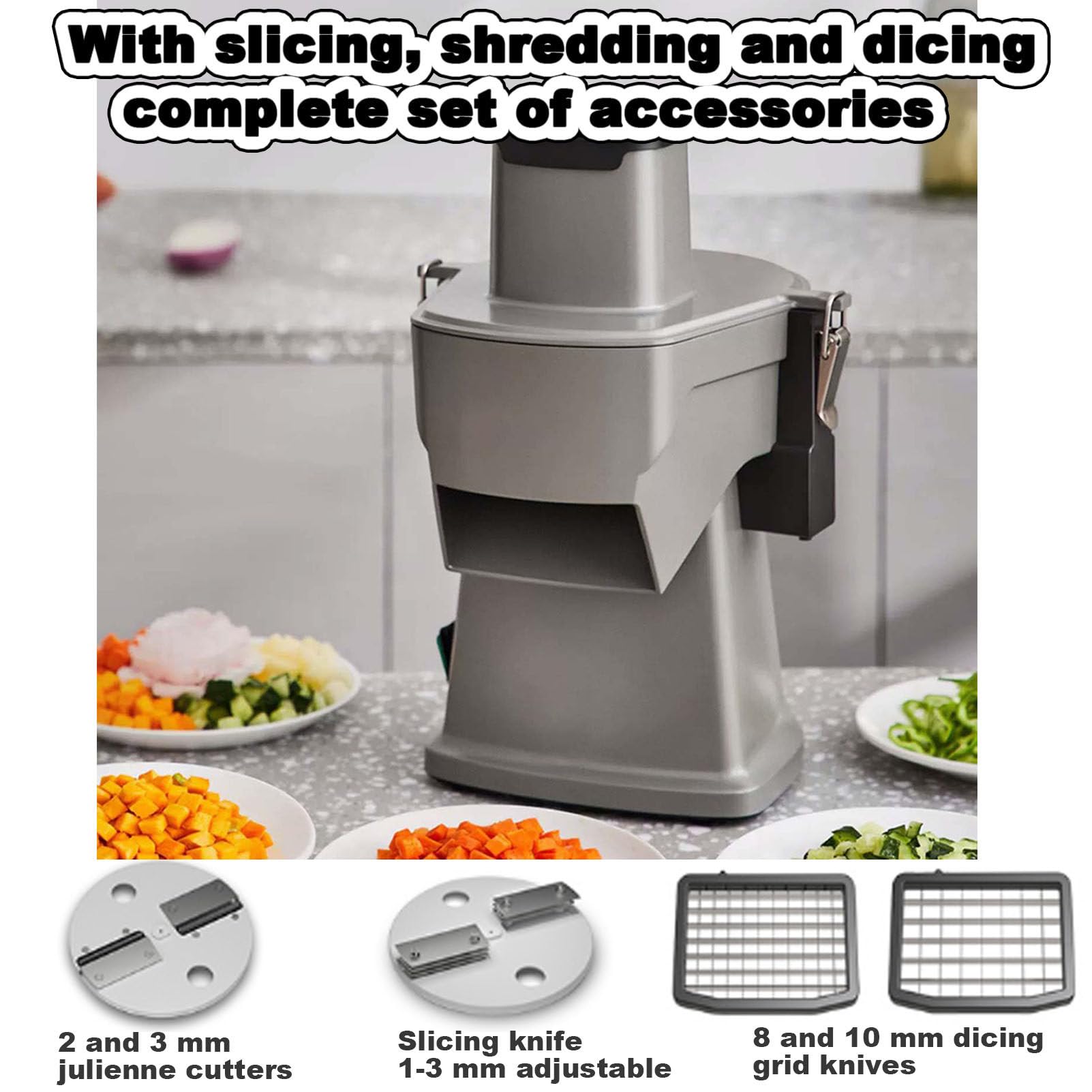 Hachoir Légumes Automatique Quixnova Machine électrique Pour Couper Les Légumes Ciboulette Coupe Légumes Professionnel équipement Transformation Légumes L'appareil s'éteint automatiquement à l'ouverture du couvercle de l'orifice d'alimentation pour éviter les blessures accidentelles. Hachoir à légumes Hachoir à oignons Manuel, Hachoir à Aliments Hachoir... Le coupe légumes électrique est un appareil qui s’utilise pour découper les légumes. Pour alors faire un meilleur choix de ce dernier, vous devez prendre compte les critères ci-après ◑【Largement utilisé】Ce coupe-légumes est conçu pour trancher divers légumes-racines et râper divers légumes-feuilles, notamment le chou, les poivrons, le piment, les poireaux, les feuilles de moutarde, le varech, le céleri, l'ail, les pommes de terre, l'igname, les pousses de bambou, les oignons, les melons, les aubergines, etc. Des pieds antidérapants sous l'appareil assurent un fonctionnement stable. YUCHENGTECH Coupe Légumes Électrique Professionnel Decoupe Legumes en ◑【Conception sécurisée】Ce hachoir à ail est équipé de clips de sécurité en acier inoxydable sur l'orifice d'alimentation et la partie machine, garantissant le maintien de l'orifice d'alimentation et évitant tout risque de chute. ◑ Machine électrique pour couper les légumes (ciboulette, oignons verts, haricots, piments), hachoir à légumes 300 kg/h, coupe-légumes professionnel - Tapis roulant amovible et lavable. Son corps entièrement en aluminium simplifie l'entretien, vous faisant gagner du temps et améliorant l'efficacité de votre cuisine. Plus besoin d'arrêts fréquents : une grande quantité d'oignons verts peut être traitée simultanément, améliorant ainsi l'efficacité globale de la préparation des repas. ◑【Efficace et gain de temps】La capacité de coupe peut atteindre 300 kg/heure, ce qui la rend plus rapide qu'un tranchage manuel. Le tapis et les lames amovibles sont faciles à nettoyer (ou simplement à essuyer). Ce robot culinaire est principalement utilisé dans les cuisines, les restaurants, les écoles, les hôtels et les usines de transformation alimentaire. L'épaisseur est réglable de 1,3 à 35 mm., 4., Ce coupe-légumes électrique professionnel est équipé d'un tapis roulant antidérapant de 7 cm de large, de qualité alimentaire, épais et résistant à l'usure, pour minimiser l'adhérence des légumes., 5., Le couvercle d'alimentation et les lames amovibles du coupe-oignons verts facilitent le nettoyage.