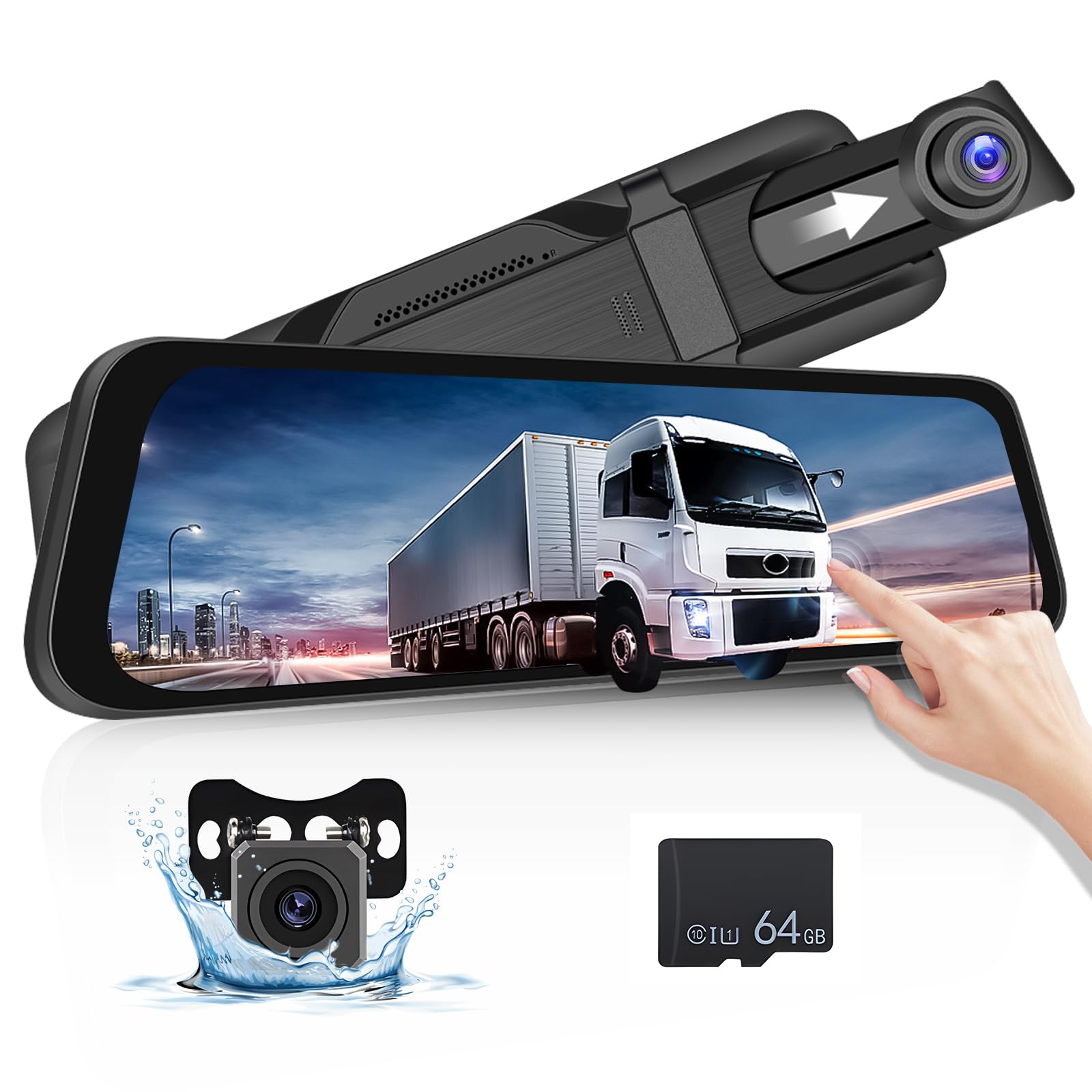 [Caméras à 3 vues avant, intérieur, arrière de 9,66 pouces]: Écran tactile IPS premium de 9,66 pouces, miroirs de streaming améliorés., Grand plaisir visuel. Caméra de vue arrière de voiture étanche IP66 avec vision nocturne pleine couleur. Fournit une image claire et vive à la lumière du jour et de la nuit sombre Équipé de caméras doubles avant et arrière, avant 2K ultra et milieu, arrière 1080P ultra clarté, champ de vision 150 ° et 120 °, mieux capturer une vue claire du véhicule derrière, une sécurité sans faille sans angles morts. (La dashcam a une caméra frontale extensible., ) Vous pouvez également télécharger, éditer et partager la vidéo en un seul clic, des moments merveilleux peuvent être sauvegardés de façon permanente et le moment durer éternellement. Miroir Dashcam 9.66 Pouces CAMECHO Rétroviseur 9,66 Pouces 2K Miroir Dash CAM Voiture Caméra Voiture Triple Vue 2k 1080p [Vision nocturne et angle de vision total]: Dashcam avec fonction de vision nocturne super, vision nocturne de capture de haute qualité, pas besoin de s'inquiéter du changement de tunnel/nuit/environnement sombre. [G-Sensor & Reverse Assist]: G-Sensor active automatiquement le modèle vidéo d'urgence lors d'un freinage d'urgence. Pendant l'inverse, l'appareil affiche des lignes d'assistance inversée pour faciliter un stationnement plus sûr et plus efficace et prévenir les collisions inutiles., ., [Contrôle WIFI APP]: Soutenez le contrôle de WIFI, en connectant votre application de smartphone via WIFI, vous pouvez visualiser et gérer la caméra de recul en temps réel sur votre appareil iOS ou Android. [Enregistrement en boucle de 24 heures et carte 64G]: 24 heures d'enregistrement en boucle, fonctionnant à chaque instant, assurant une surveillance continue de la sécurité. Rétroviseur tachygraphe double objectif 4,3 pouces voiture surveillance La carte mémoire maximale prise en charge par l'appareil est 128G. Vous pouvez contrôler et régler la dashcam voiture plus facilement. [Un Rétroviseur]: Non seulement une caméra de vioture en haute résolution, mais aussi un rétroviseur intérieur voiture. Un excellent aspect avec le verre anti-reflets de 2,5D, offrant une vue arrière claire et complète